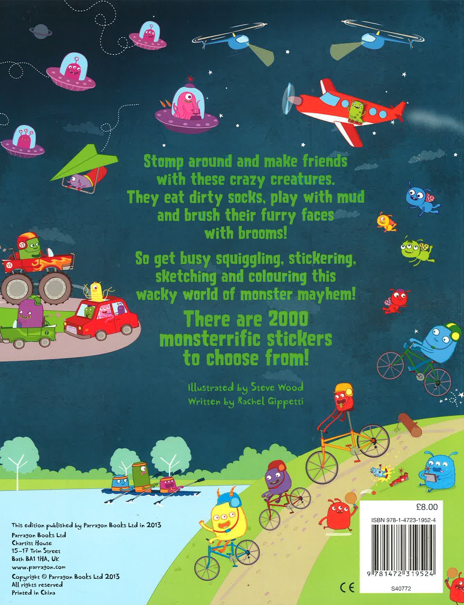 Stomp around and make friends with these crazy creatures. They eat dirty socks, play with mud and brush their furry faces with brooms! So get busy squiggling, stickering, sketching and colouring this wacky world of monster mayhem! There are 2000 monsterific stickers to choose from!