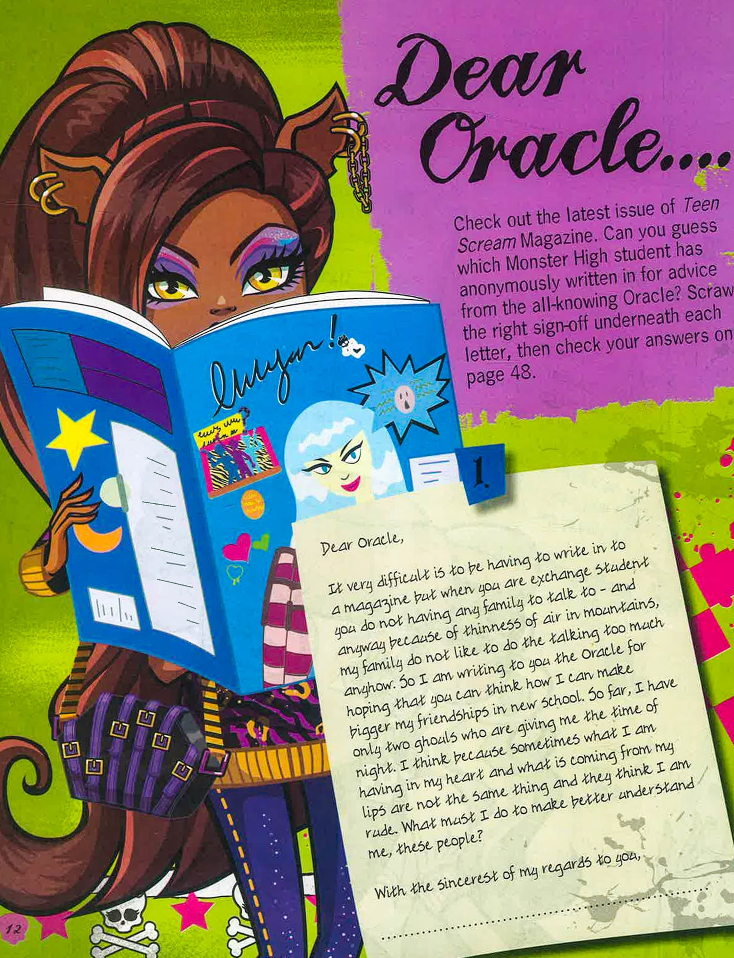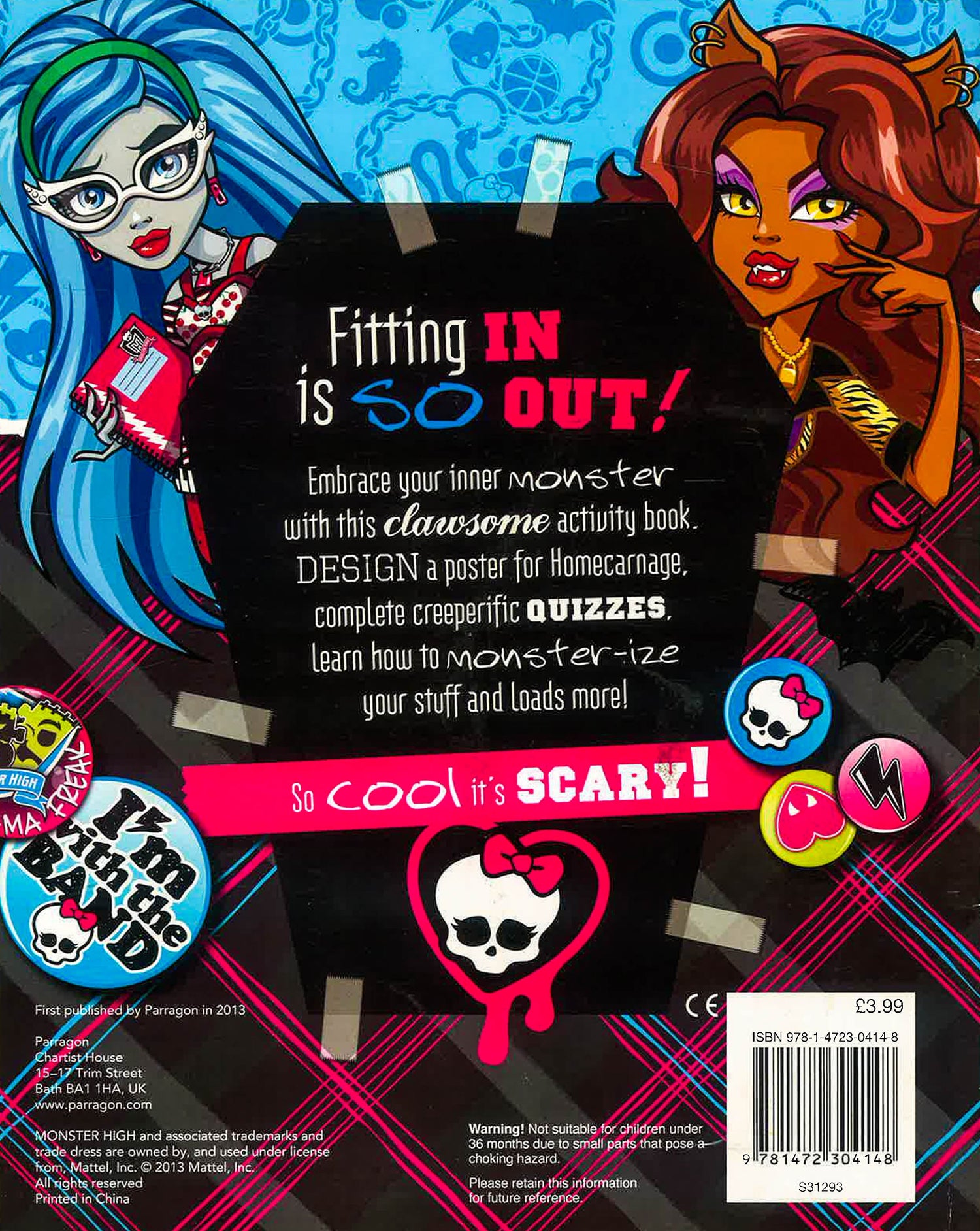 This Activity Book features customisation activites, quizzes, horrorscopes, FrightTube entries and coded notes between the monsters.