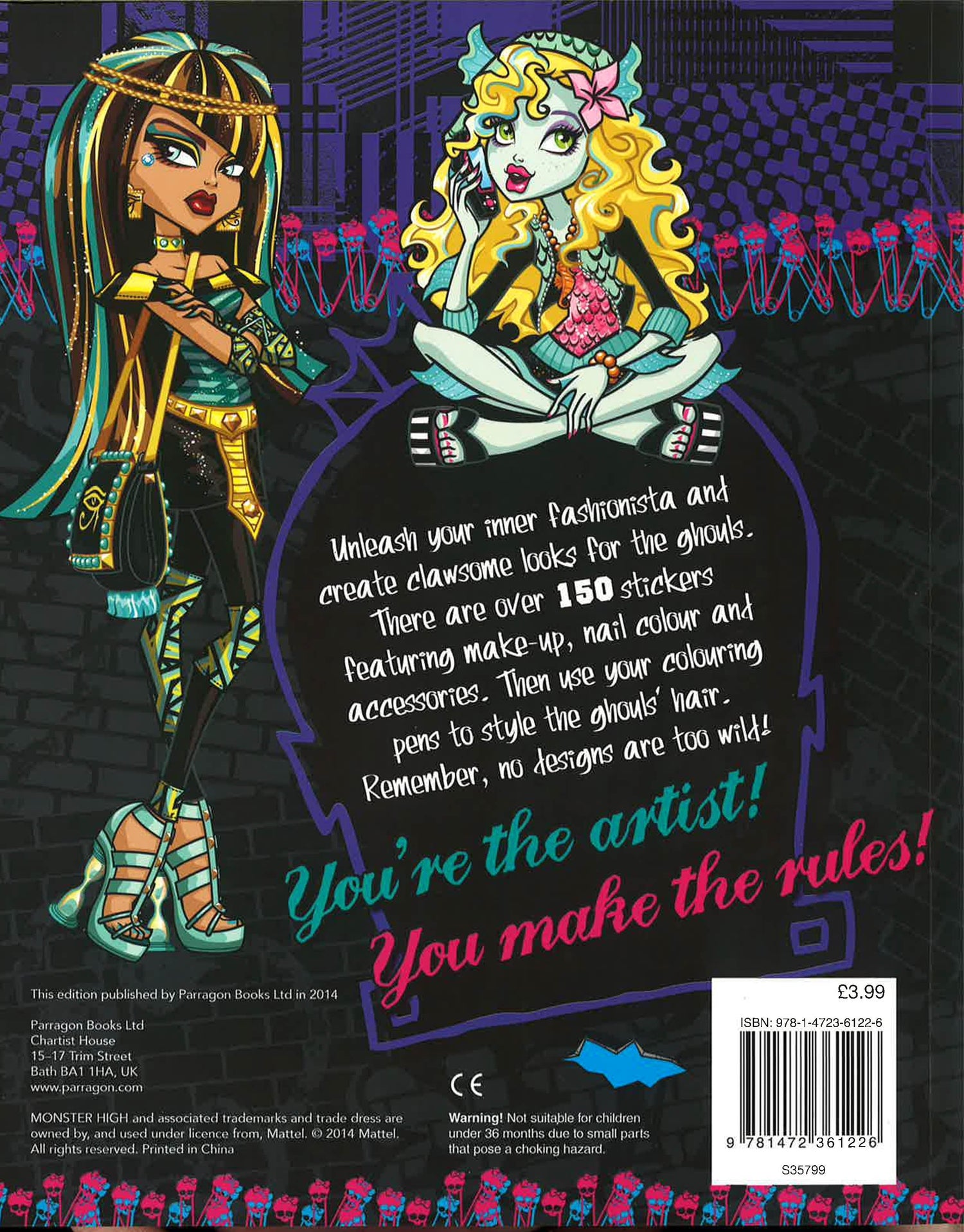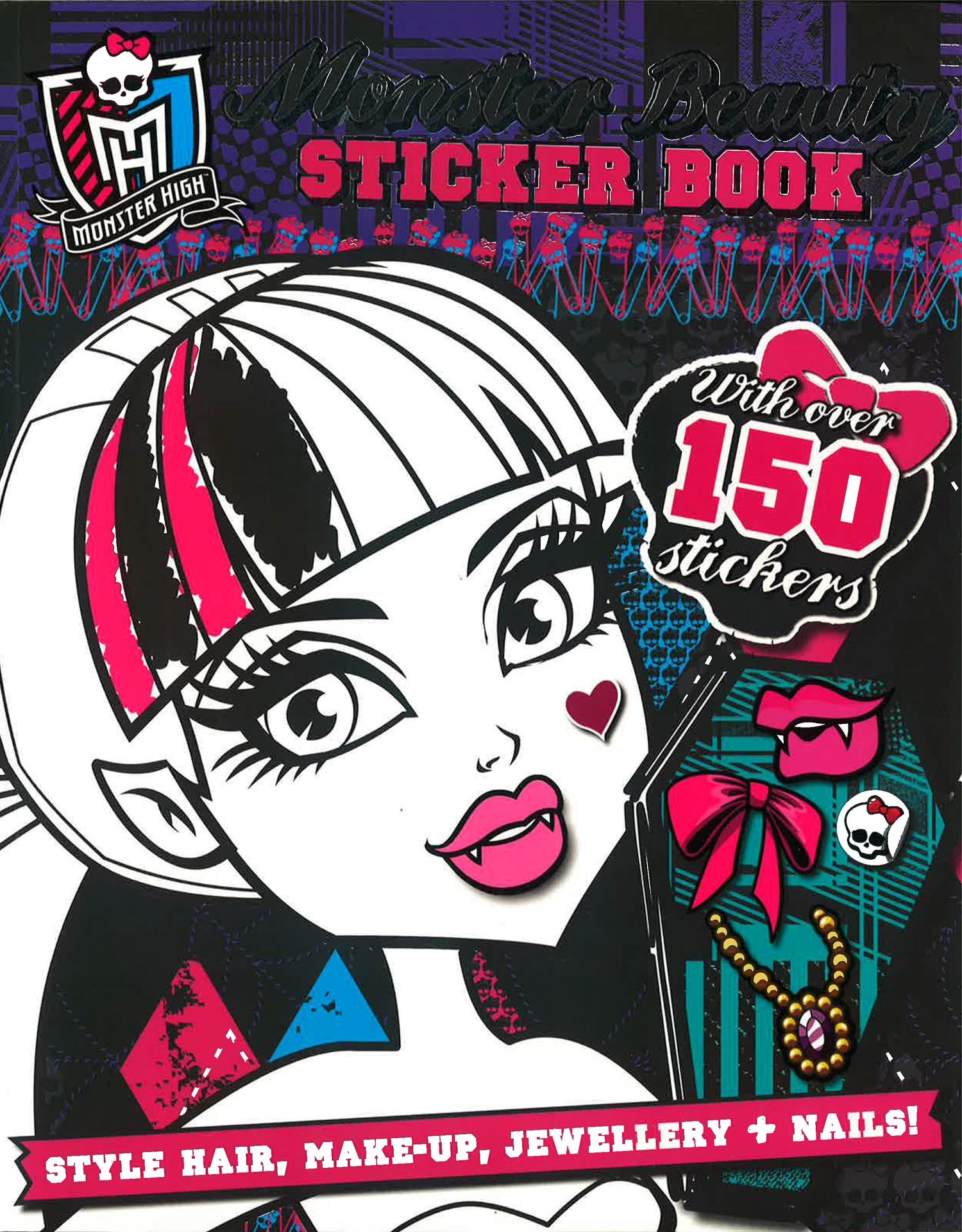 Style the Monster High characters' hair, make-up, jewellery and nails with over 150 stickers. There are images of the characters' faces and hands to decorate, and the pictures can be coloured in too!