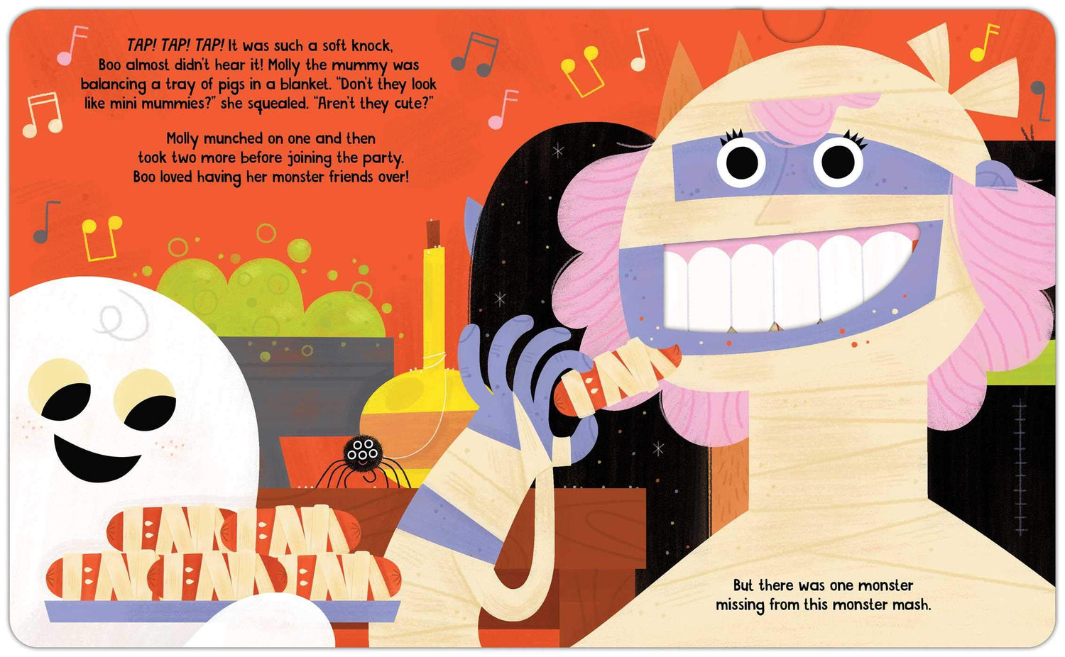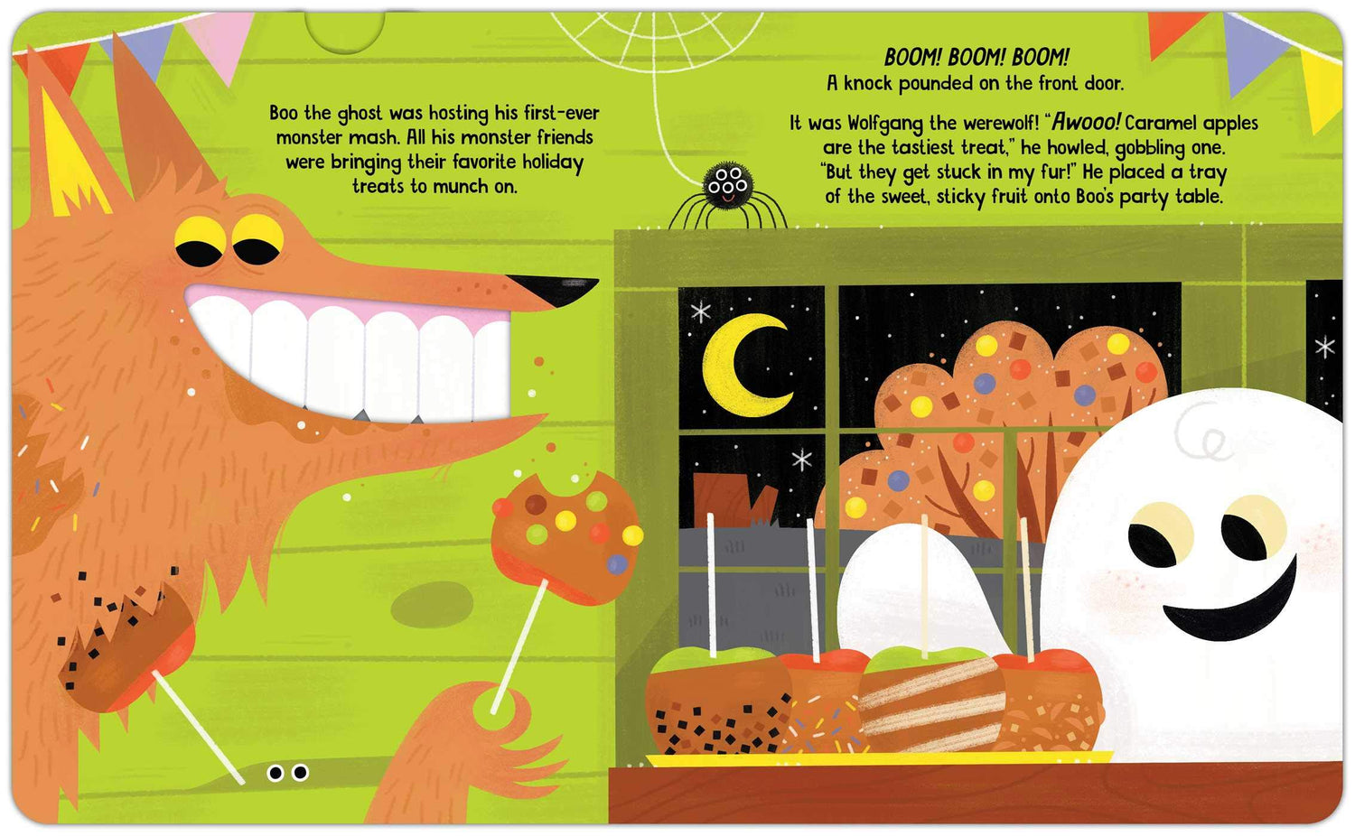It's Halloween, and Boo the Ghost is throwing a party for his monster friends! What snacks will the monsters munch on? Kids will love making monsters take big bites of classic Halloween snacks in this interactive, yummy, adventure.