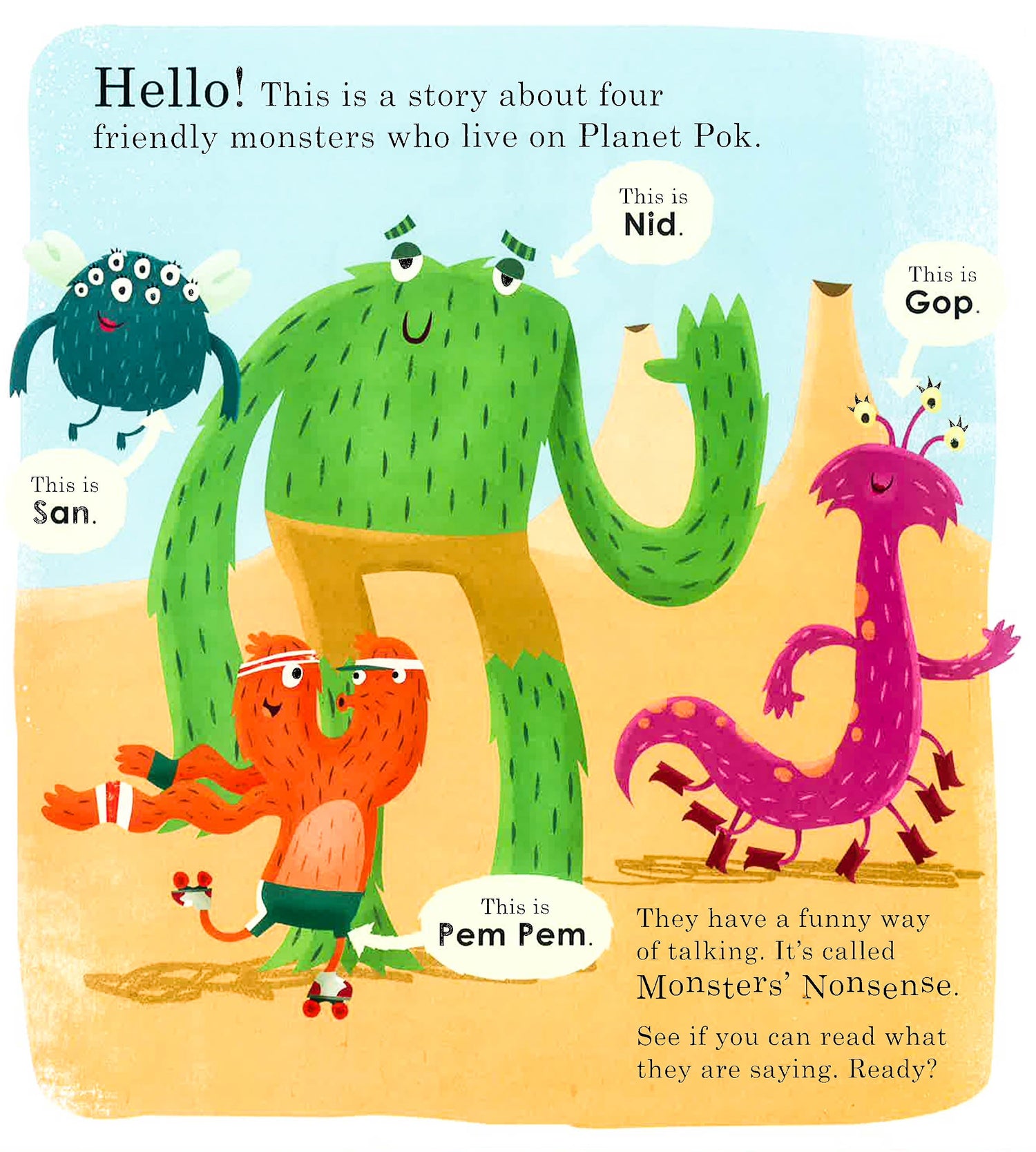 Monsters' Nonsense is designed for children to practice decoding nonsense words within a fun and exciting story. The adult reads the main narrative whilst the child is encouraged to read the monsters' language in speech bubbles. These ' non words' help them practise their emerging phonics skills at a level that is right for them. Brought to life by award-winning author Peter Bently and Duncan Beedie's comic book style, each story stars one of the monsters cast in a leading role. This series creates a valuable shared reading experience and will inspire any child to become a monster reader!