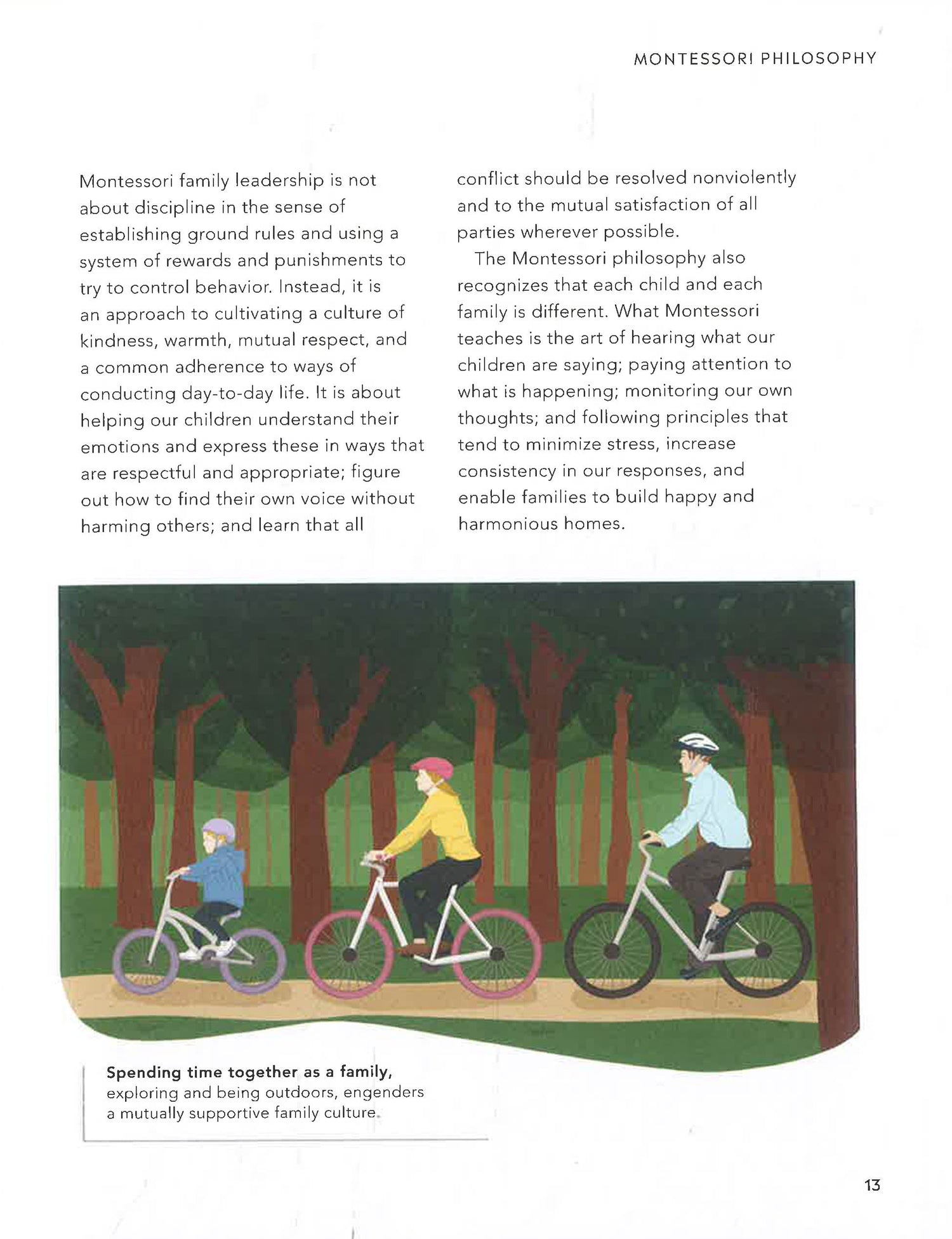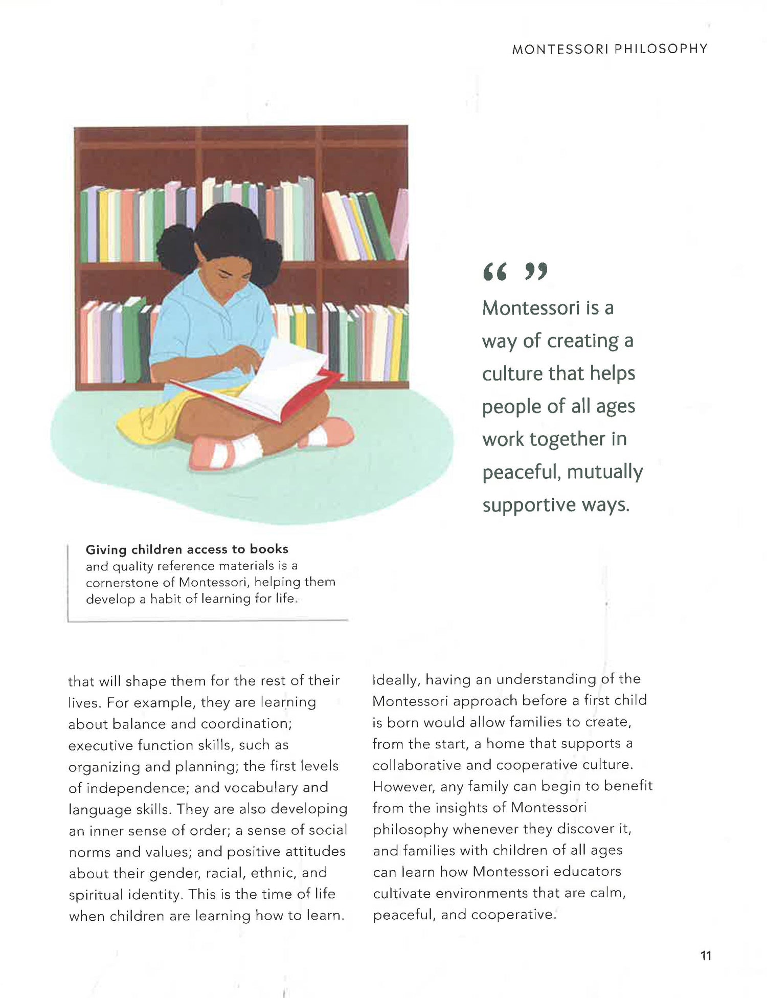 • Outlines of the Montessori principles clearly and succinctly: respect, freedom, curiosity, creativity, responsibility and independence.