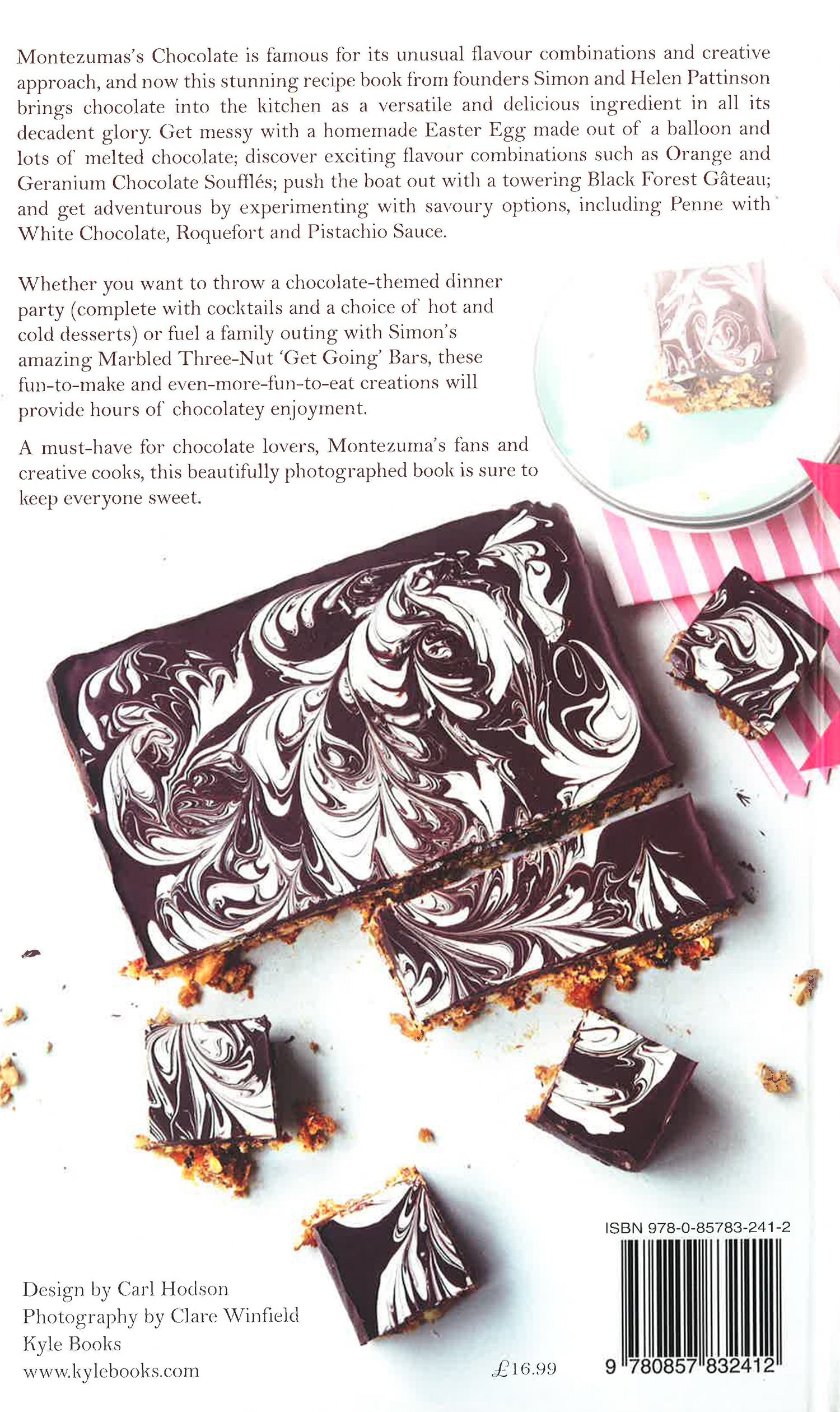 Montezuma's Chocolate is famous for its unusual flavour combinations and creative approach, and now this stunning recipe book from founders Simon and Helen Pattinson brings chocolate into the kitchen as a versatile and delicious ingredient in all its decadent glory. Get messy with a homemade Easter Egg made out of a balloon and lots of melted chocolate; discover exciting flavour combinations such as Orange and Geranium Chocolate Souffles; push the boat out with a towering Black Forest Gateau; and get adventurous by experimenting with savoury options, including Penne with White Chocolate, Roquefort and Pistachio Sauce. Whether you want to throw a chocolate-themed dinner party (complete with cocktails and a choice of hot and cold desserts) or fuel a family outing with Simon's amazing Marbled Three-Nut 'Get Going' Bars, these fun-to-make and even-more-fun-to-eat creations will provide hours of chocolatey enjoyment. A must-have for chocolate lovers, Montezuma's fans and creative cooks, this beautifully photographed book is sure to keep everyone sweet.