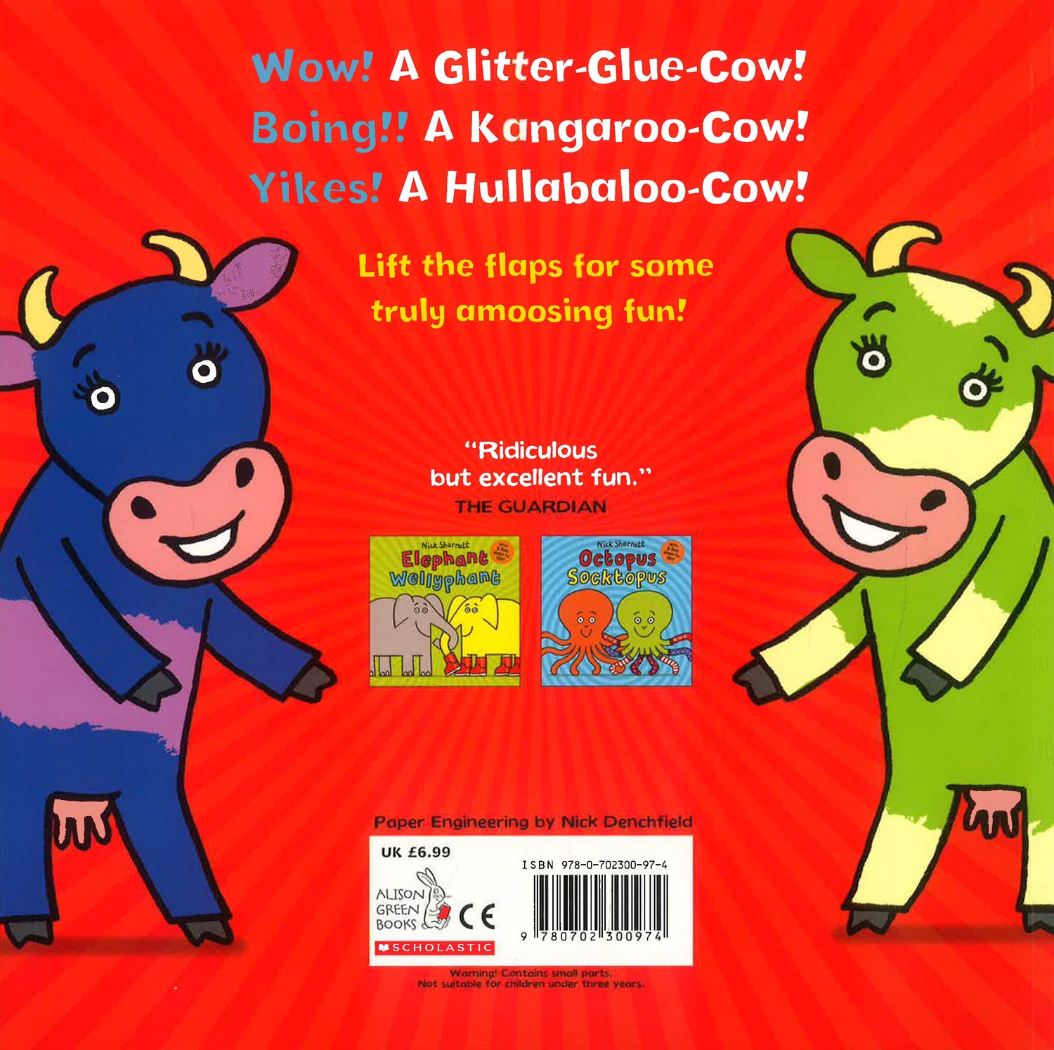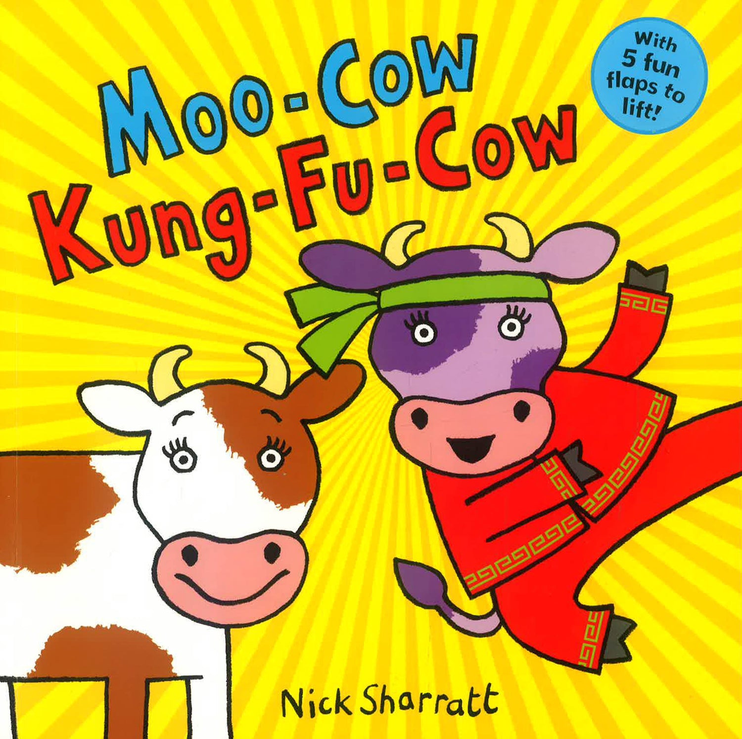 Wow! A Kung-Fu Cow! Yikes! A Tattoo-Cow. Boing! A Kangaroo-Cow. Which moo jumps out at you? Tug the tabs and lift the five chunky flaps of this brilliant novelty picture book to see a herd of hilarious moo-cows doing all sorts of a-moosing things! There's a cool cow for everyone in this comic masterpiece, a fantastically colourful sequel to the hugely popular Octopus Socktopus and Elephant Wellyphant by Nick Sharratt, one of Britain's best-loved illustrators. With superb, satisfying novelty features: pull-tabs, pop-ups and flaps, appealing illustrations hilarious wordplay Children will love poring over these fun-filled pages, and laughing at all the puns. Two titles in this series, Elephant Wellyphant and Octopus Socktopus were shortlisted for the Roald Dahl Funny Prize Nick Sharratt is one of the UK's favourite and most acclaimed illustrators. His much-loved titles include the hugely popular Ketchup On Your Cornflakes and the Christmas version, Ketchup on Your Reindeer, The Cat and the King and the You Choose series. He is also the illustrator of the bestselling novels by Jacqueline Wilson and has won every major award for his illustration. Nick has even been presented with a gold Blue Peter badge!
