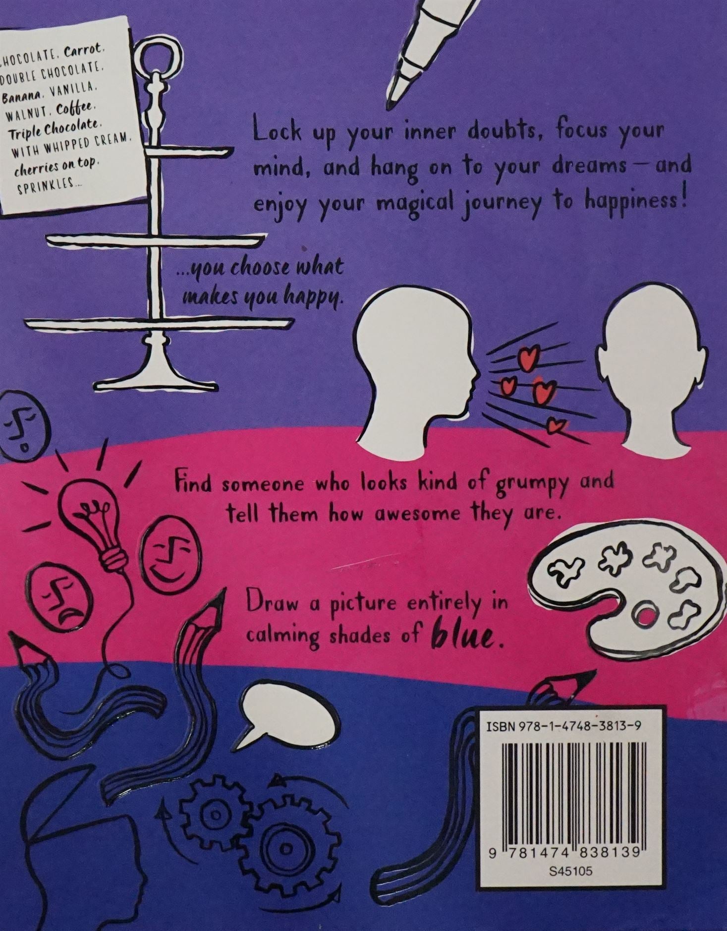 Moodles presents Free Your Mind: Draw Your Way to a Smile! Lock up your inner doubts, focus your mind, and hang on to your dreams - and enjoy your magical journey to happiness! Find someone who looks kind of grumpy and tell them how awesome they are. Draw a picture entirely in calming shades of blue. Free your mind and doodle and draw your way to a smile.