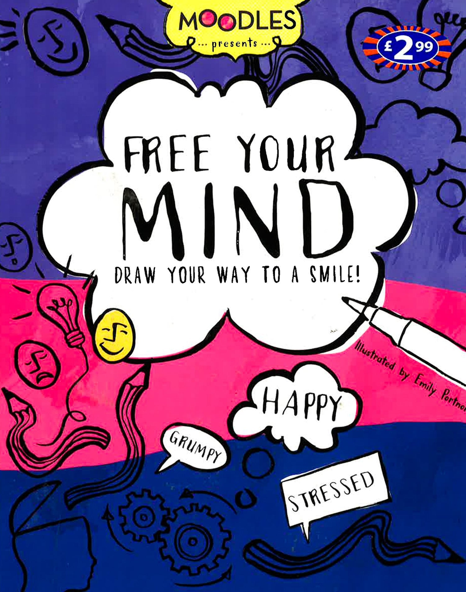 Moodles presents Free Your Mind: Draw Your Way to a Smile! Lock up your inner doubts, focus your mind, and hang on to your dreams - and enjoy your magical journey to happiness! Find someone who looks kind of grumpy and tell them how awesome they are. Draw a picture entirely in calming shades of blue. Free your mind and doodle and draw your way to a smile.