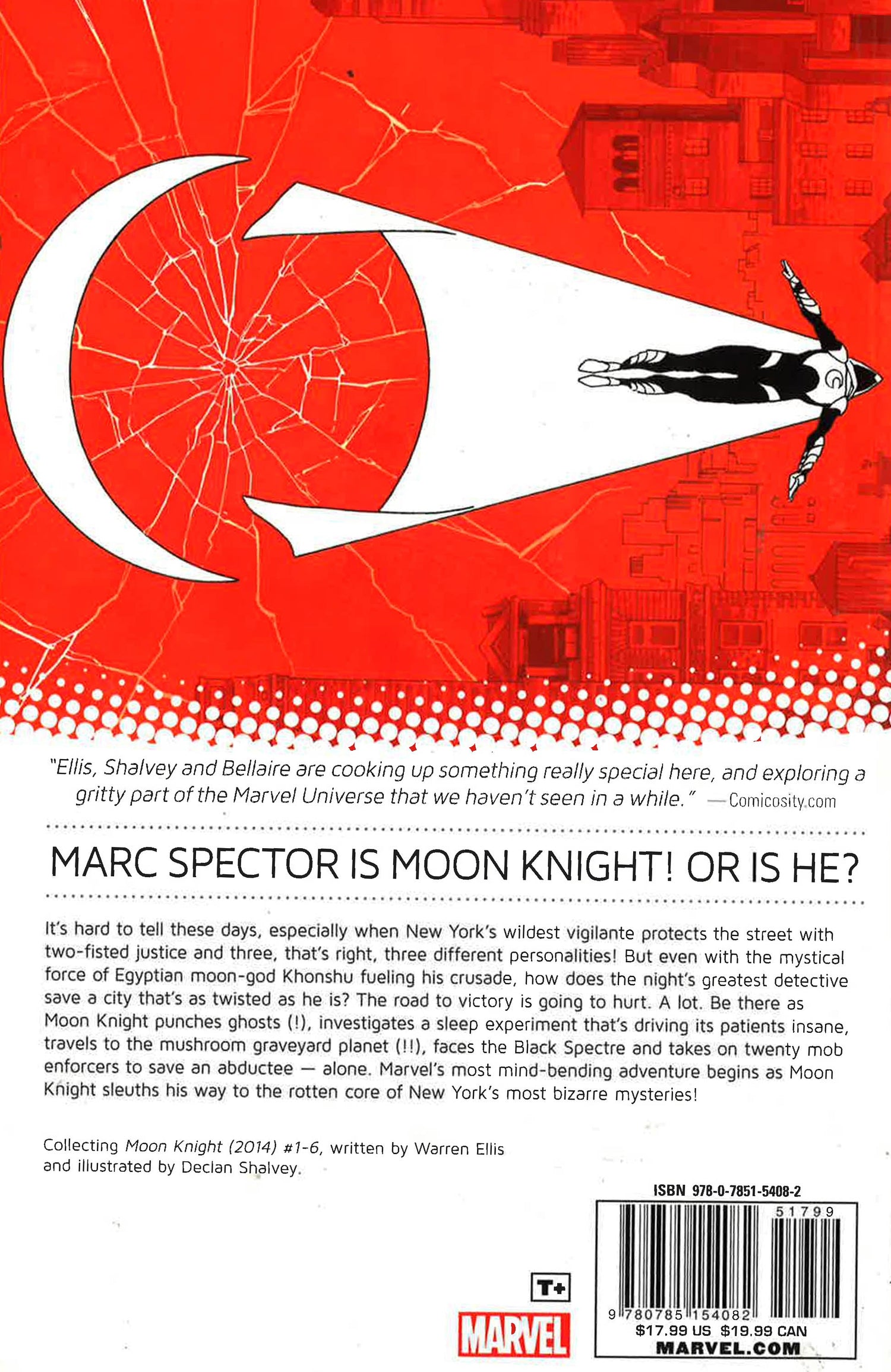 Marc Spector is Moon Knight! Or is he? It's hard to tell these days, especially when New York's wildest vigilante protects the street with two-fisted justice and three - that's right, count 'em - three different personalities! But even with the mystical force of Egyptian moongod Khonshu fueling his crusade, how does the night's greatest detective save a city that's as twisted as he is? The road to victory is going to hurt. A lot. Be here as Moon Knight punches ghosts(!), investigates a sleep experiment that's driving its patients insane, travels to the mushroom graveyard planet(!!), and takes on twenty mob enforcers to save an abductee...alone. Marvel's most mind-bending adventure begins now as Moon Knight sleuths his way to the rotten core of New York's most bizarre mysteries!