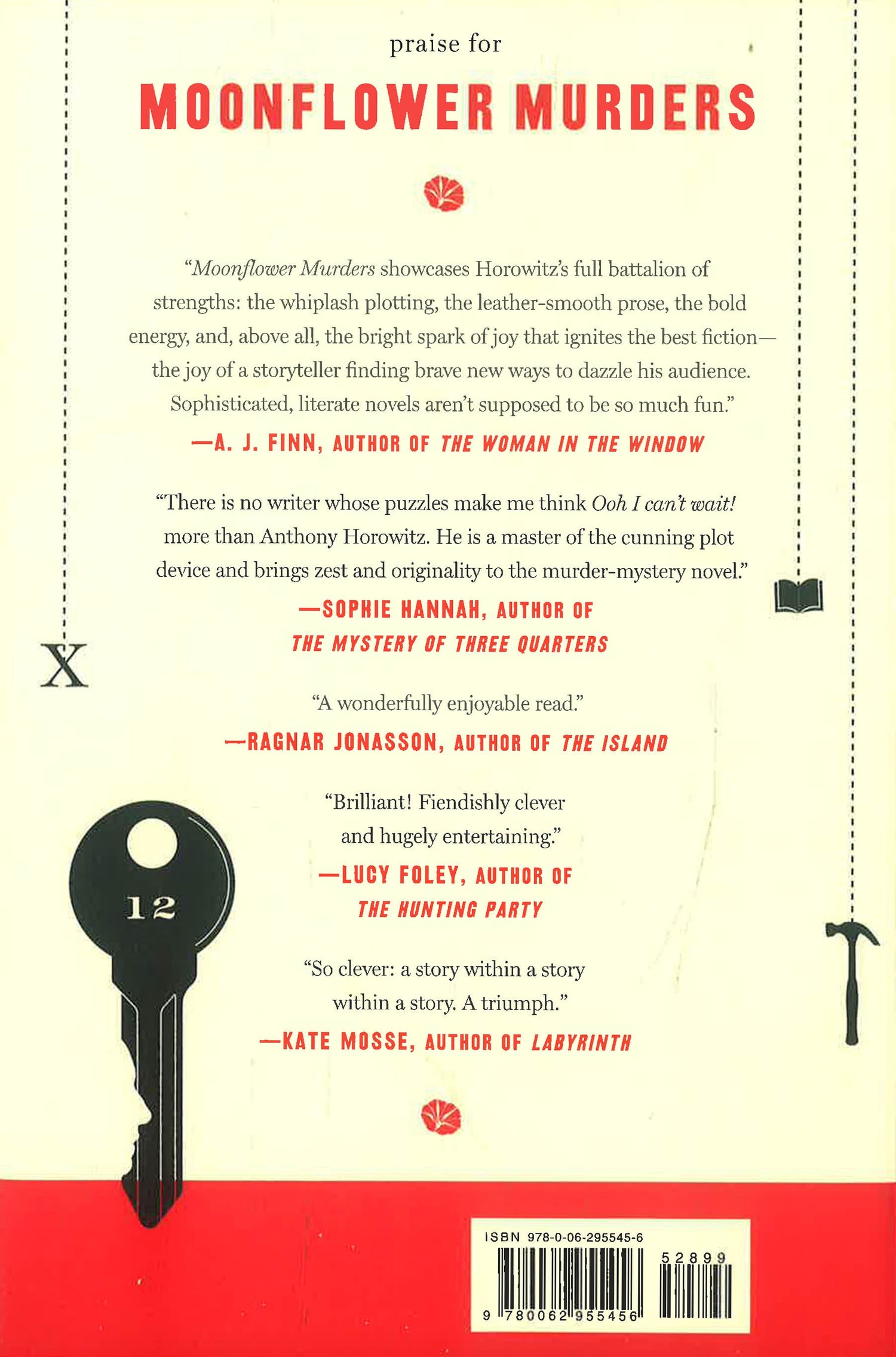 Brilliantly clever, relentlessly suspenseful, full of twists that will keep readers guessing with each revelation and clue, Moonflower Murders is a deviously dark take on vintage English crime fiction from one of its greatest masterminds, Anthony Horowitz.
