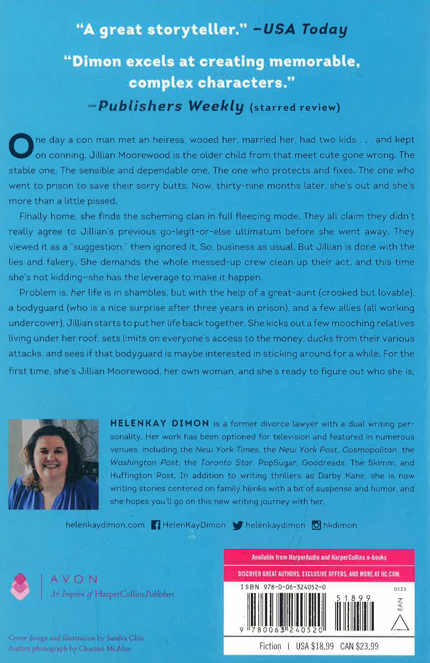 Knives Out and Ocean’s 8 meets The Nest in this hilariously twisty novel by award-winning author HelenKay Dimon, about a woman who returns home from prison to her dysfunctional con artist family and tries to get them to go legit.