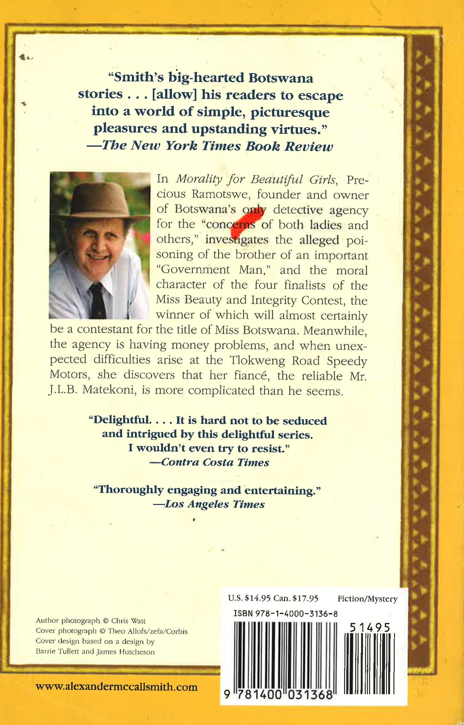 The No. 1 Ladies' Detective Agency, published in 1998, introduced the world to the one and only Precious Ramotswe, the engaging and sassy owner of Botswana's only detective agency. Tears of the Giraffe took us further into this world and now, continuing the adventures of Mma. Ramotswe, Morality for Beautiful Girls finds her expanding her business to take in the world of car repair and a beauty pageant.