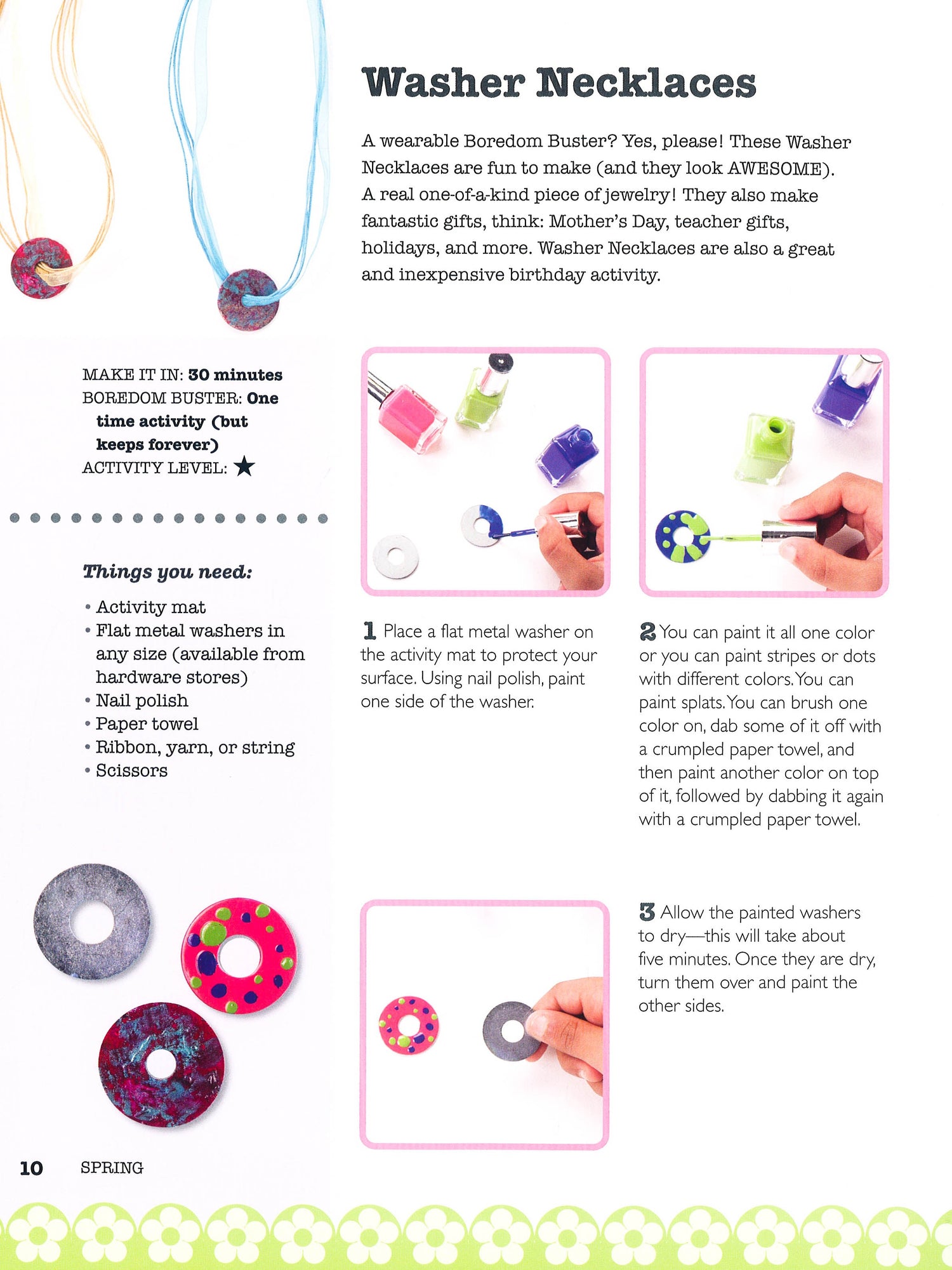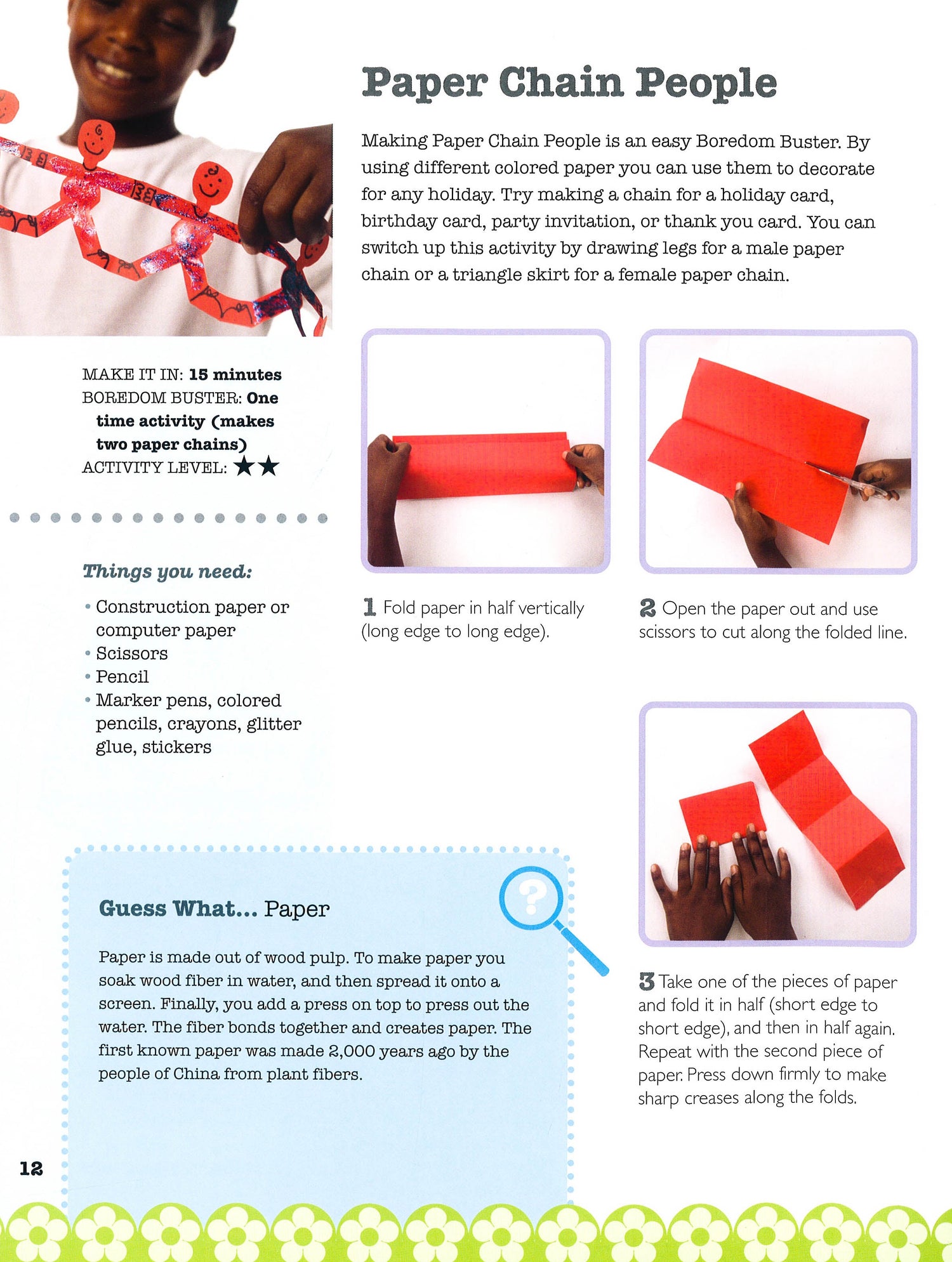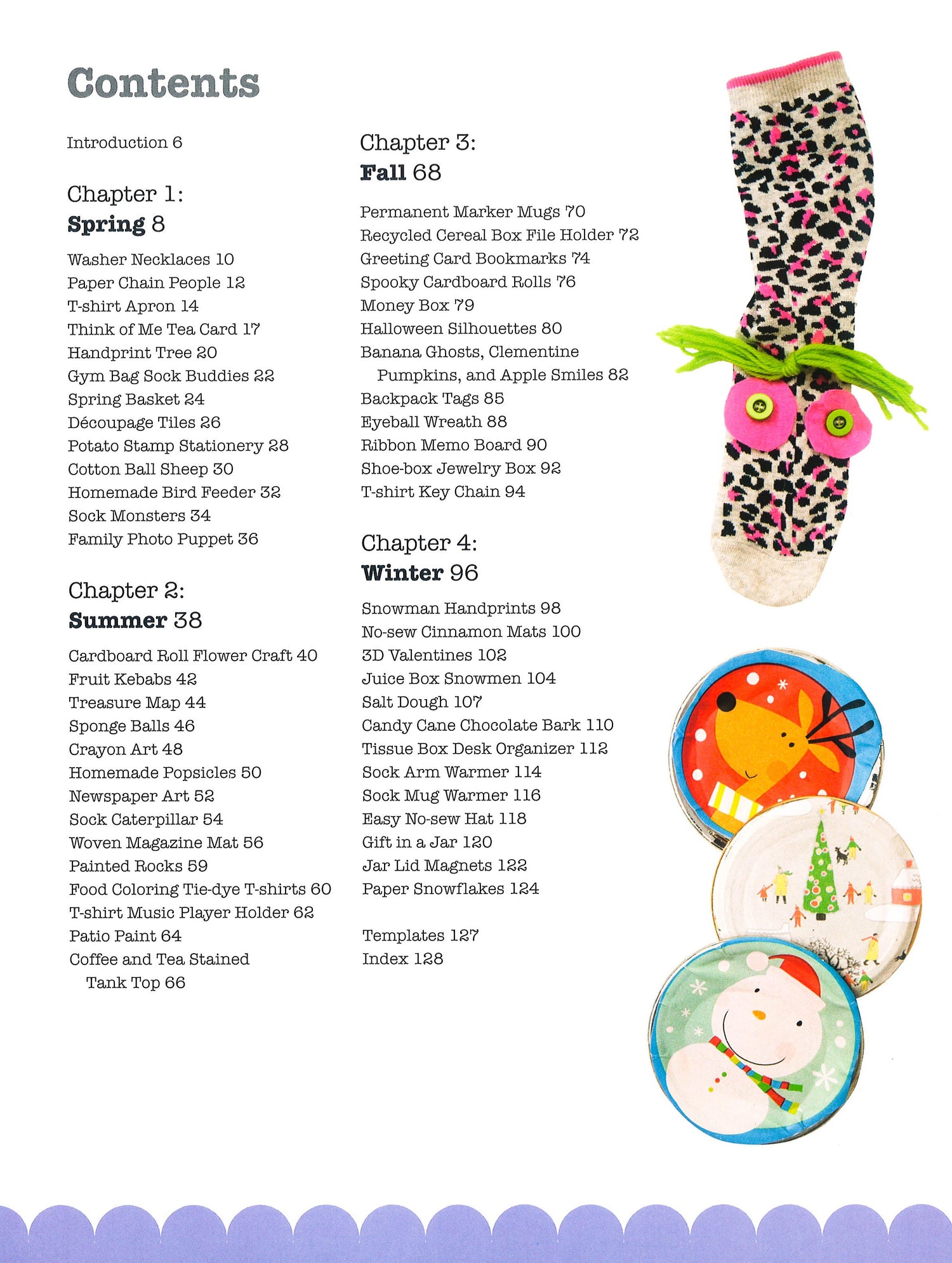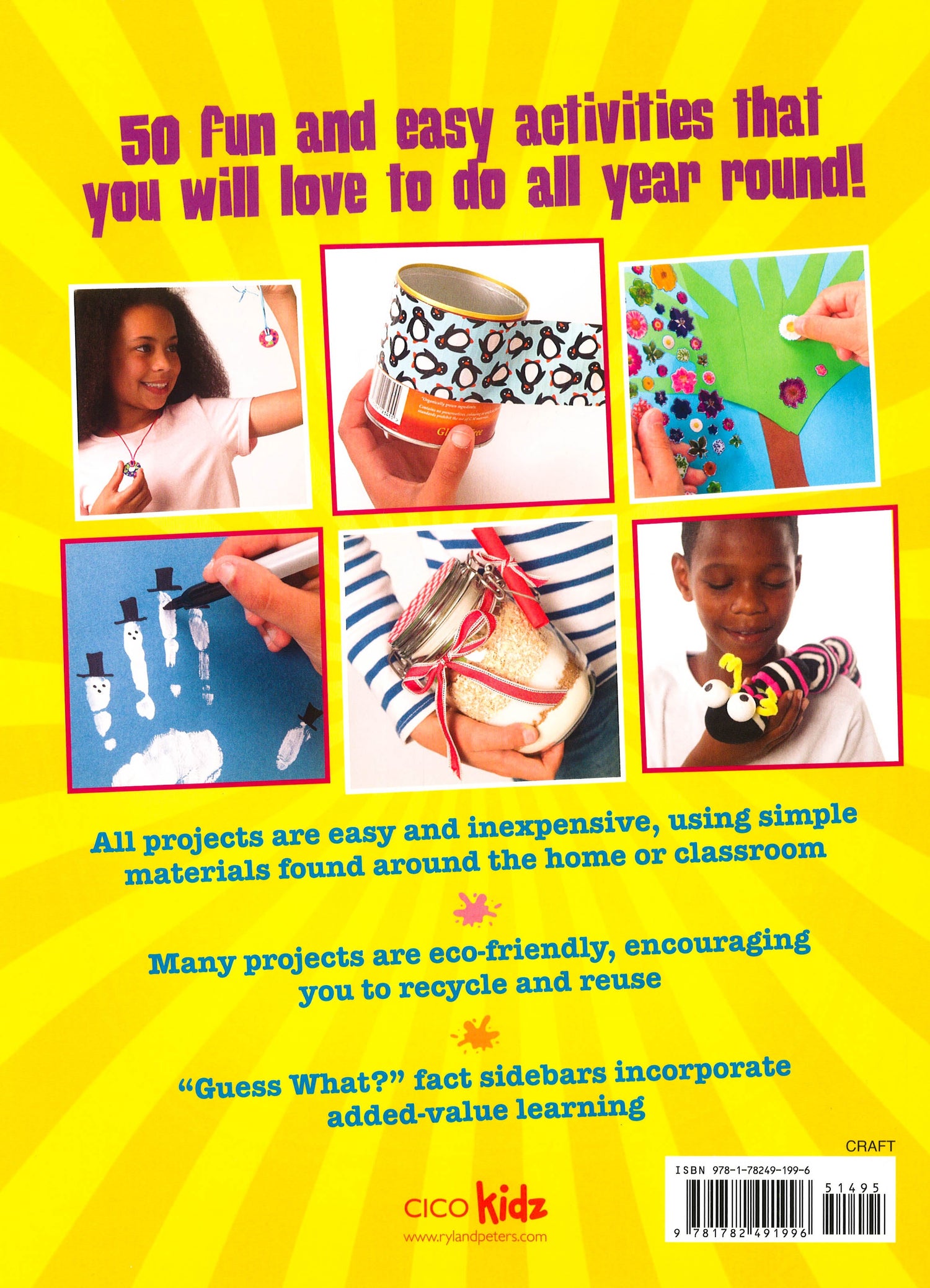 50+ fun and easy activities that you will love to do all year round! Be bored no more! You’ll love all the fun things to do and make in “More Boredom Busters.” There’s a chapter of activities for each season of the year, and within those, you’ll also find ideas for your favorite holidays, such as Halloween, Christmas, Valentine’s Day, Mother’s Day, and Father’s Day. Get set to enjoy awesome activities, from Permanent Marker Mugs—add your own designs to a mug for yourself or as a gift—to Woven Magazine Mats that use up old magazines, helping you to recycle at the same time as crafting. The summer Fruit Kebobs are delicious, while the Halloween Party Food, including banana ghosts and clementine “pumpkins,” not only looks great for parties, but tastes delicious, too. Getting messy with paint is always fun, so why not create some Snowman Handprint pictures? You can even tie-dye T-shirts using food coloring, to make yourself a brightly-patterned new outfit. Every activity has easy instructions and uses simple materials found around the home or classroom, so you can get started straight away!