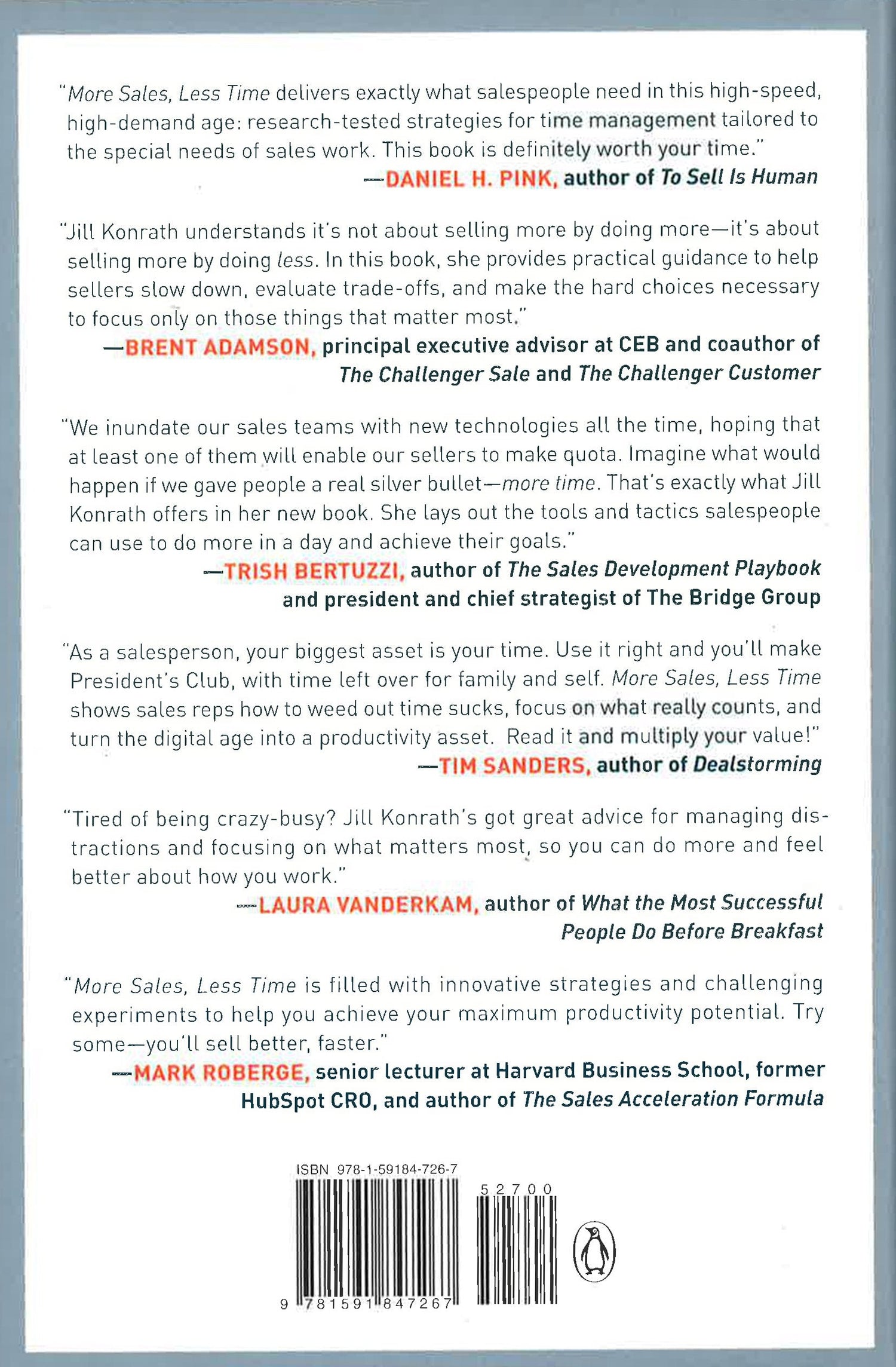 "I felt like time was taunting me: 'Behind again? You'll never get it all done.' I worked harder and longer hours, sacrificing my limited personal time to stay ahead of the game. Still, it wasn't sufficient. My work just kept expanding, demanding more of me. I could never seem to call it a day. In my entire career, I'd never faced a sales problem of this magnitude." Sound familiar? If so, you're probably an overwhelmed seller. Your clients expect more, with faster turnarounds. Your quota keeps going up. You need to leverage social media, keep up-to-date on your industry, figure out how to sell new products and services, and learn all the latest technologies. The demands are never-ending. You could work nonstop around the clock and still not get it all done. It's a huge problem faced by experienced sales pros, busy entrepreneurs, and sales rookies. If you don't stay on top of your time, it's tough to make your numbers, let alone blow them away. Konrath, a globally recognized sales consultant and speaker, knew she needed help, but found that advice aimed at typical workers didn't work for her--or for others who needed to sell for a living. Salespeople need their own productivity guidelines adapted to the fast-paced, always-on sales world. So Konrath experimented relentlessly to discover the best time-savers and sales hacks in order to deliver the first productivity guide specifically for sales success. In More Sales, Less Time, Konrath blends cutting-edge behavioral research with her own deep knowledge of sales to teach you how to succeed in this age of distraction. You'll discover how to: - Reclaim a minimum of one hour per day by eliminating major time sucks and changing the way you tackle e-mail and social media. - Free up time to focus on activities that have the highest impact on your sales results, such as preparing, researching, strategizing, and connecting with customers. - Optimize your sales processes to eliminate redundancies and wasted time. - Transform your mind-set to effortlessly incorporate new, more productive habits; leverage your best brainpower; and stay at the top of your sales game. Konrath helps you develop strategies specifically tailored to your life in sales, using your strengths to cut through the feeling of being overwhelmed. All salespeople have the same number of hours in a day; it's up to you to rescue your time to sell smarter.