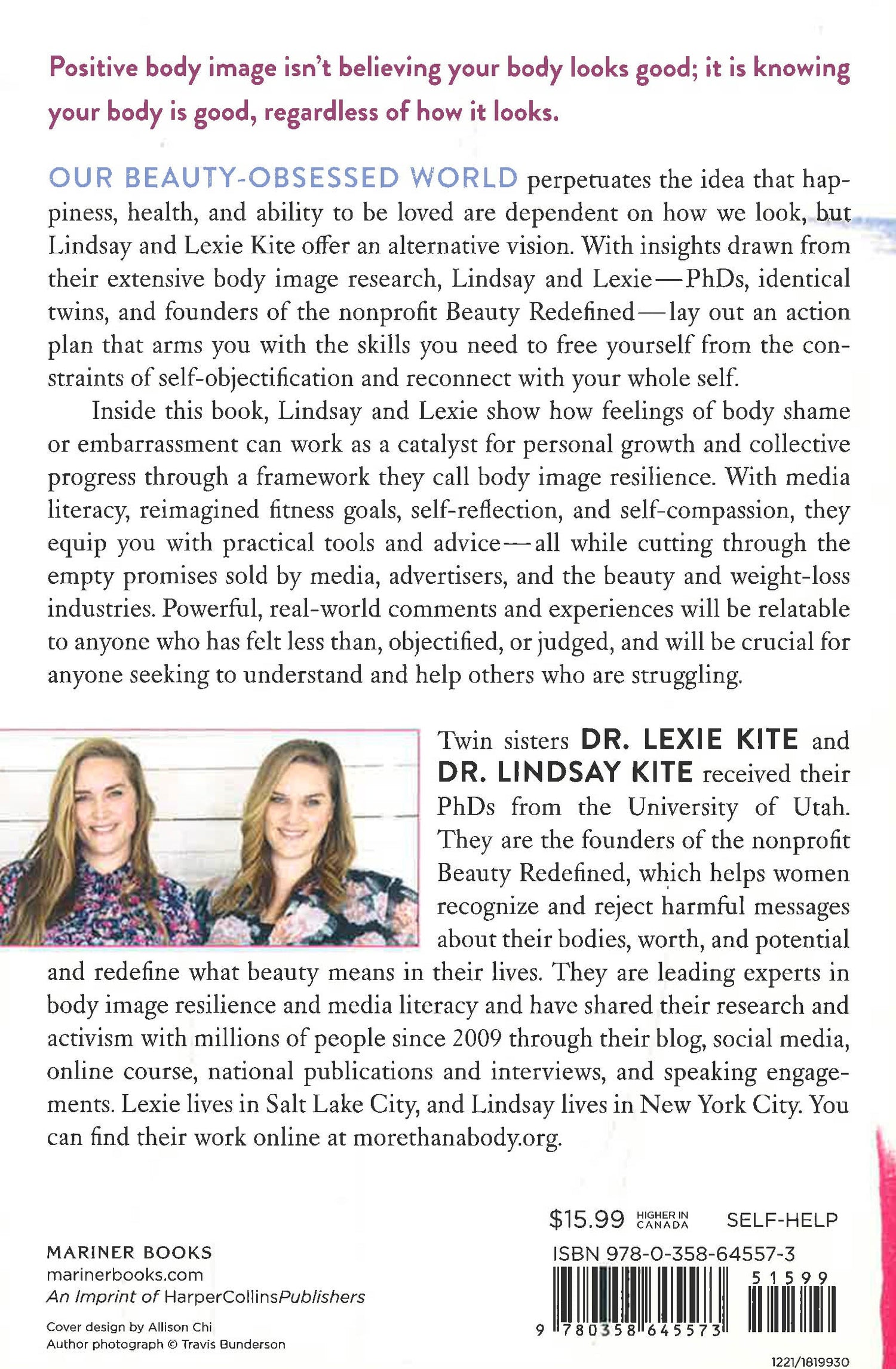 Our beauty-obsessed world perpetuates the idea that happiness, health, and ability to be loved are dependent on how we look, but authors Lindsay and Lexie Kite offer an alternative vision. With insights drawn from their extensive body image research, Lindsay and Lexie--PhDs and founders of the nonprofit Beauty Redefined (and also twin sisters!)--lay out an action plan that arms you with the skills you need to reconnect with your whole self and free yourself from the constraints of self-objectification.