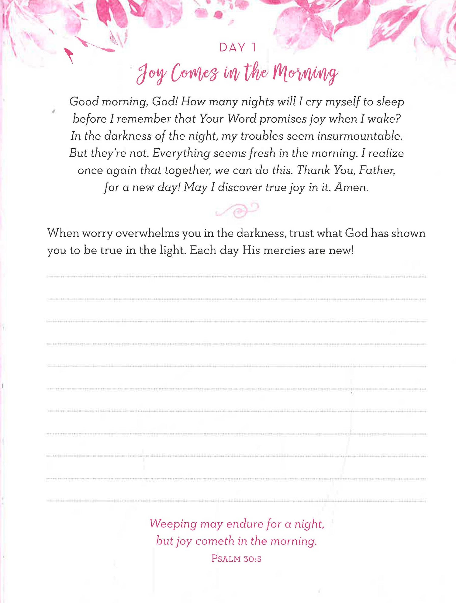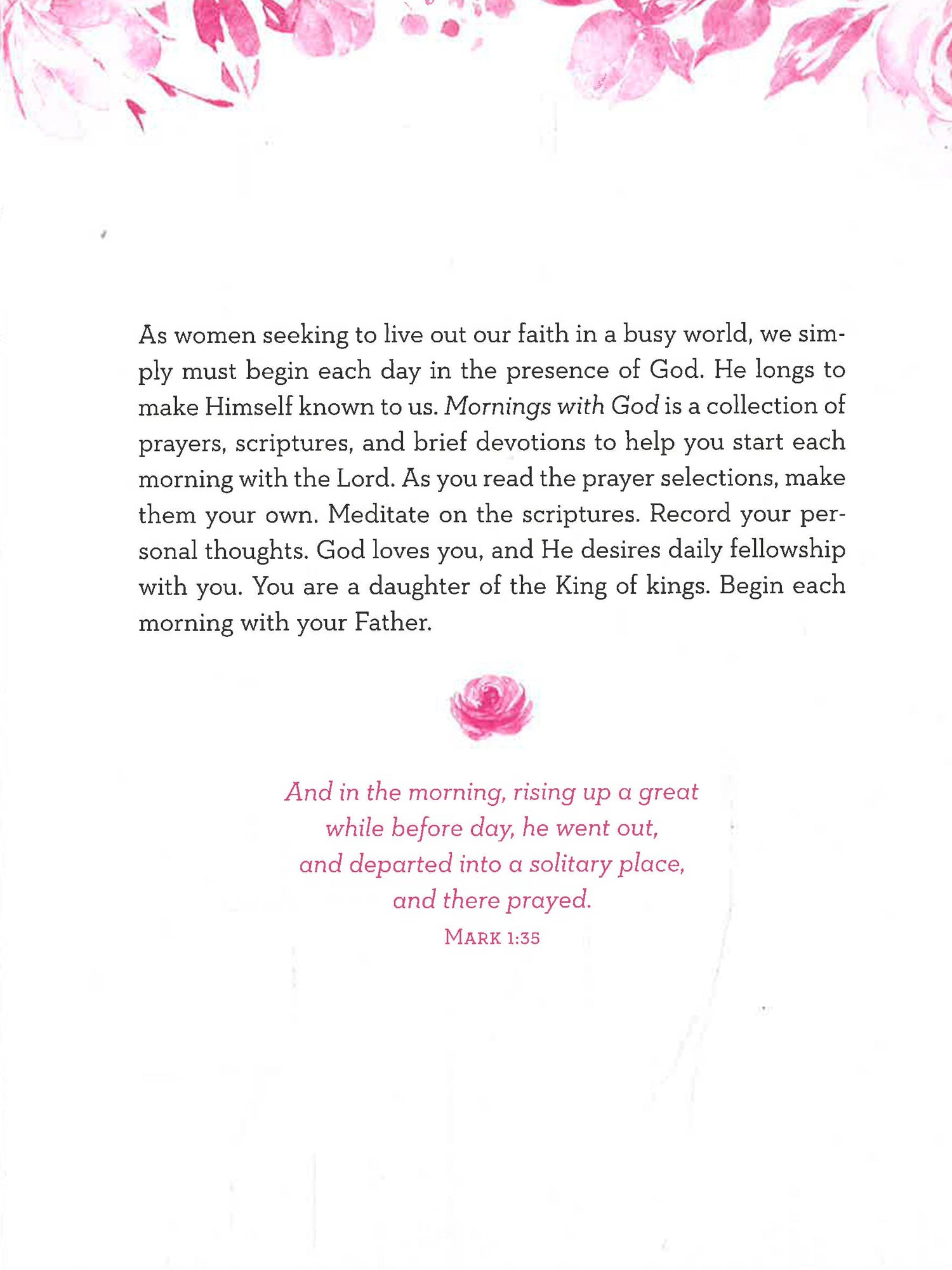365 faith-building prayers are accompanied by inspiring devotional thoughts, scripture selections, and generous journaling space—just for you. Featuring just-right-sized readings to fit into your busy morning routine and scripture selections you’ll start your days off right with Mornings with God: My Daily Prayer Journal!