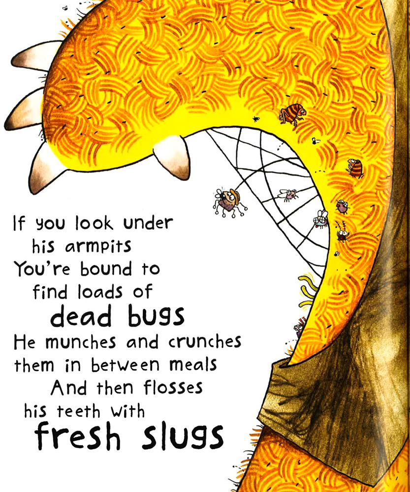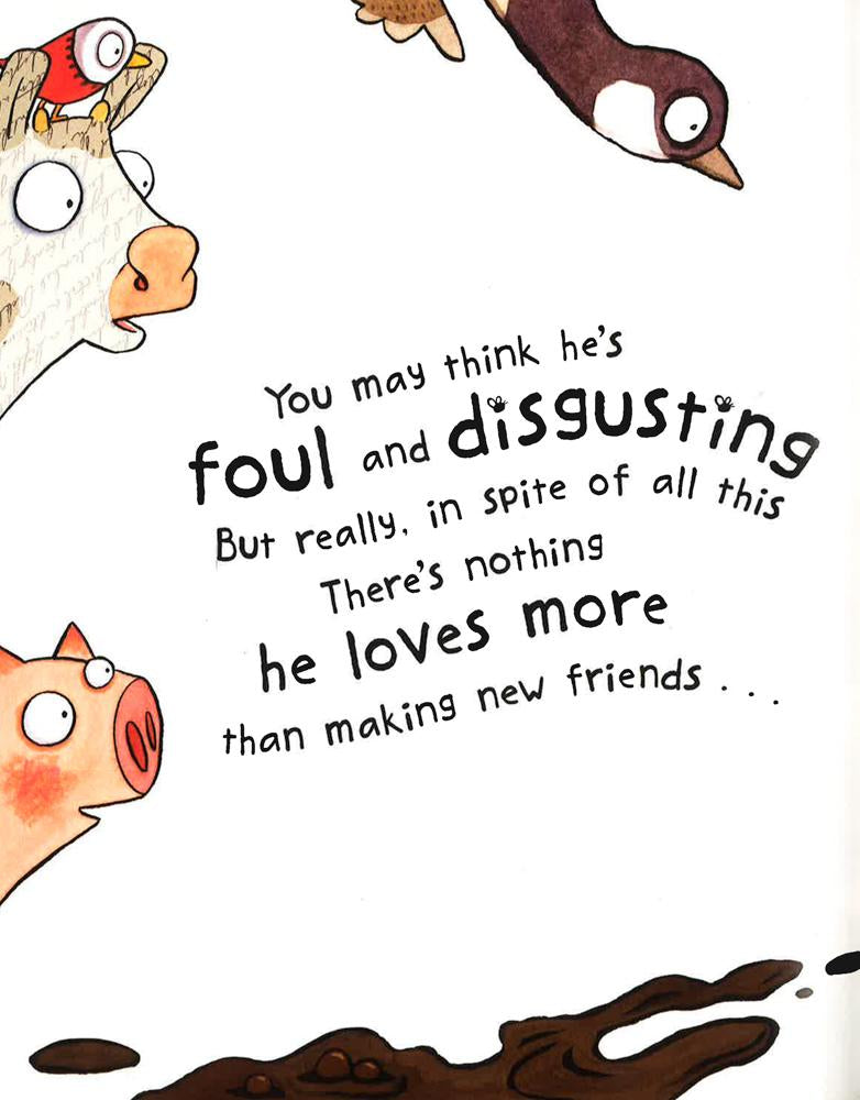 Giles Andreae and Sarah McIntyre would like you to meet Morris, the world's stinkiest picture book hero... It's years since he last changed his t-shirt, It's crusty and crawling with ants. His shoes are all slurpy and squelchy inside, And potatoes grow out of his pants.