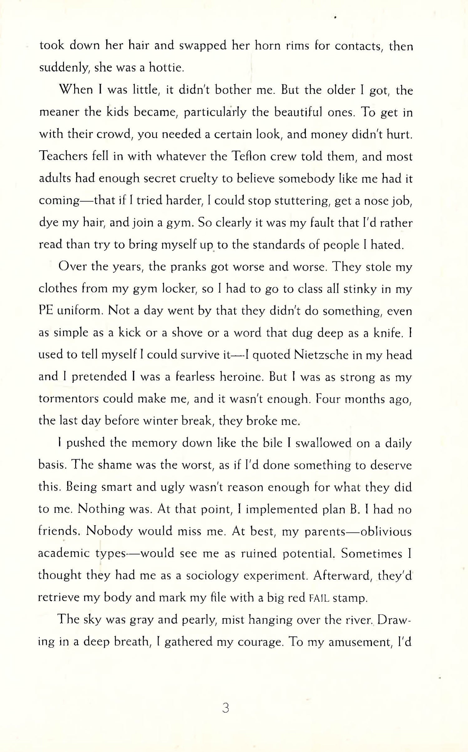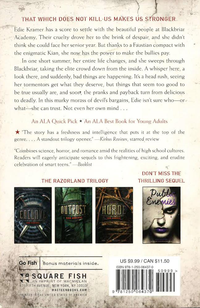 Edie has been relentlessly bullied, and she's come to the end of her rope. Mysterious and beautiful boy Kian shows up to make her dreams come true. That is, if she signs an agreement with him and his magical faction. She's skeptical, but decides she has nothing to lose. Her desire for revenge against her bullies outweighs everything. And she knows exactly what she wants from Kian. Over the summer he makes her beautiful, transforms her. She'll be able to slip into the crowd that devastated her life. She'll destroy them from the inside. As it all unfolds, Edie learns more about Kian's world and what it is their agreement requires. His world is a dark world, filled with cold and harsh people. Like Edie, Klan has a dark past and she wants so badly to trust him completely, but something's standing in her way.