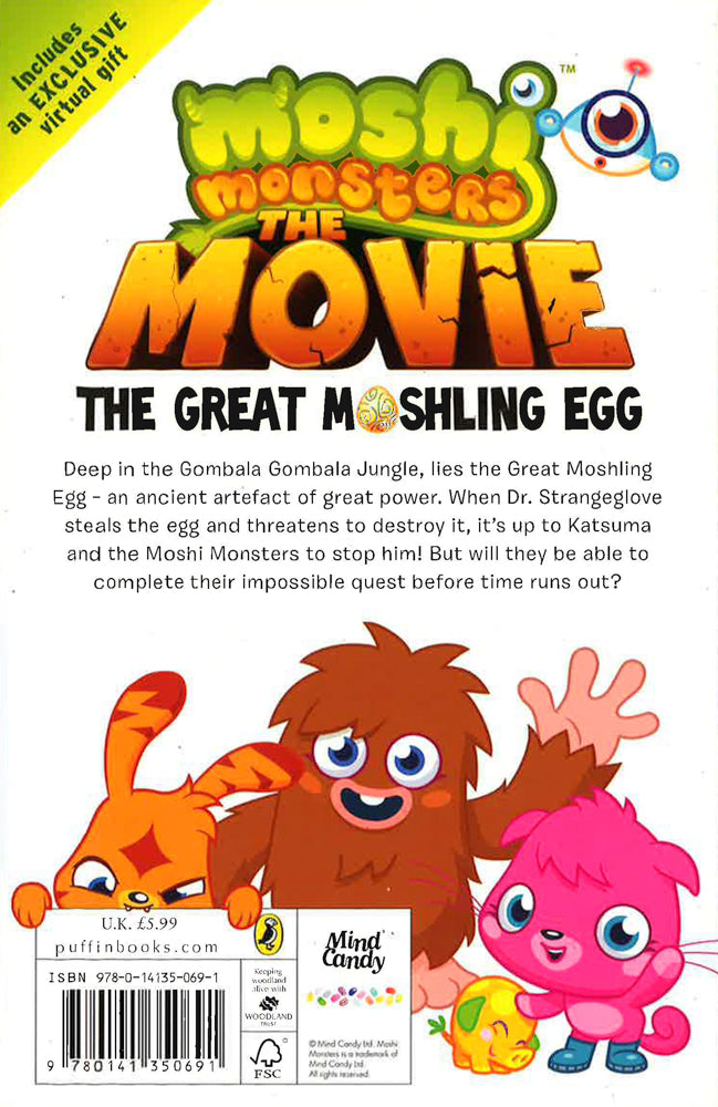 A retelling of the adventures of Katsuma, Poppet, Furi, Luvli, Diavlo and Zommer as they come up against Dr Strangeglove and his dastardly schemes. Relive the excitement of the first ever Moshi Monsters movie! This retelling of the adventures of Katsuma, Poppet, Furi, Luvli, Diavlo and Zommer as they come up against Dr. Strangeglove and his dastardly schemes is the perfect page-turner stocking filler for all Moshi Monsters fans!