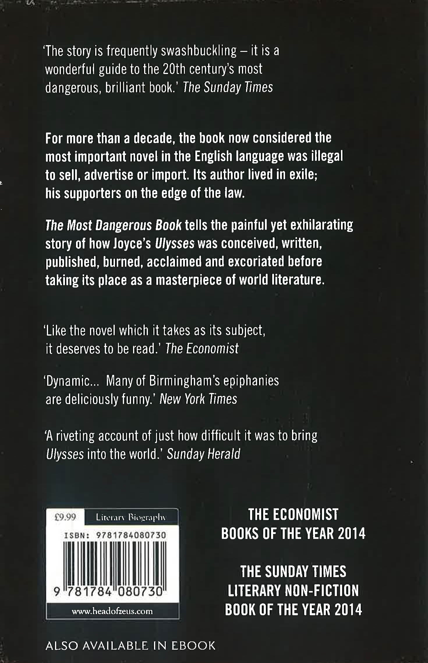 THE SUNDAY TIMES LITERARY NON-FICTION BOOK OF THE YEAR 2014. THE ECONOMIST BOOKS OF THE YEAR 2014. For more than a decade, the book now considered the most important novel in the English language was illegal to sell, advertise or import. Its author lived in exile; his supporters on the edge of the law. THE MOST DANGEROUS BOOK tells the painful yet exhilarating story of how Joyce's ULYSSES was conceived, written, published, burned, acclaimed and excoriated before taking its place as a masterpiece of world literature.