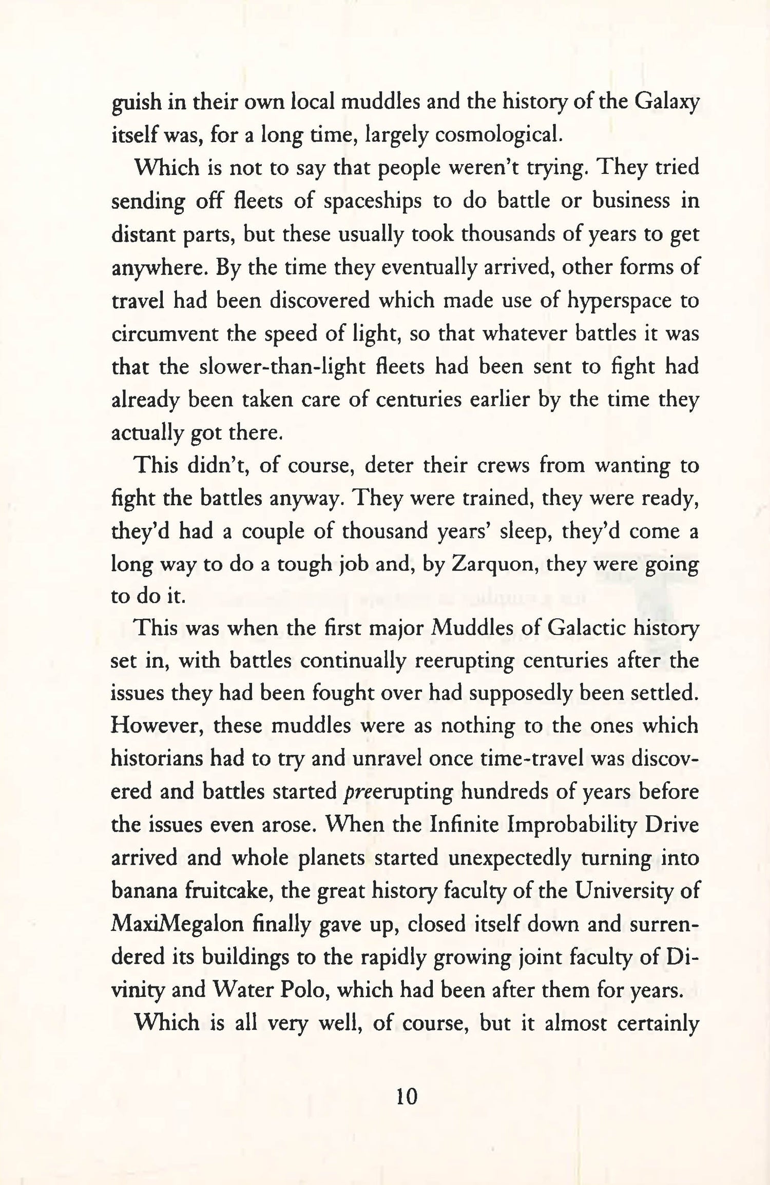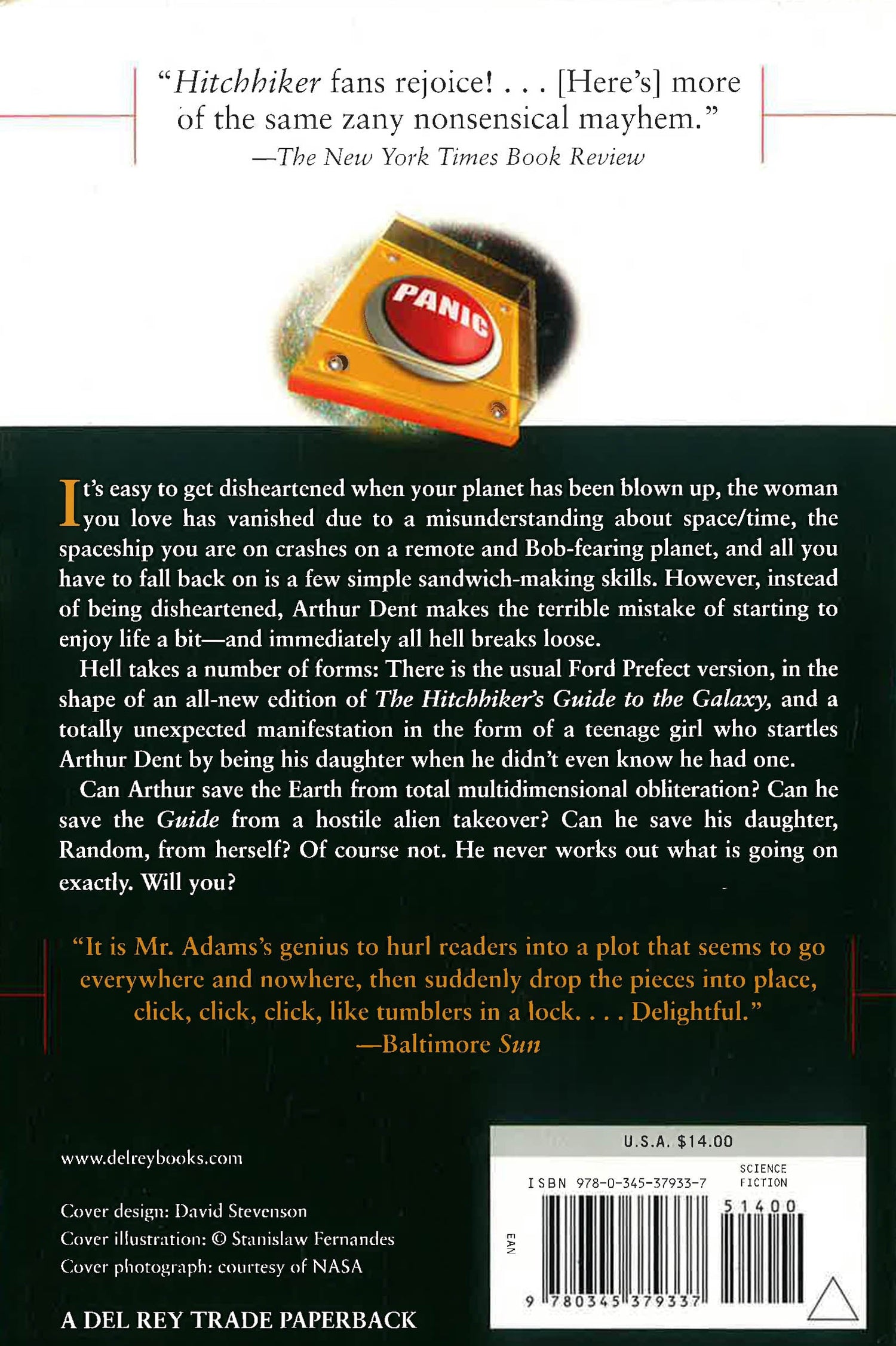 It's very easy to get a little disheartened when your planet has been blown up, the woman you love has vanished in a misunderstanding about the nature of space-time, the spaceship you are on crashes in flames on a remote and Bob-fearing planet and all you have to fall back on are a few simple sandwich-making skills. However, instead of being disheartened, Arthur Dent makes the terrible mistake of starting to enjoy life a bit and, immediately, all hell breaks loose. Hell takes a number of forms: there is the usual Ford Prefect form of hell, fresh hell in the form of an all-new version of The Hitchhiker's Guide to the Galaxy which behaves in an altogether more mysterious, sinister and airborn manner, and a totally unexpected hell that arrives in the form of a teenage girl who utterly startles Arthur Dent by being his daughter when he didn't even know he had one. Much as Arthur would love to stay in his rural sandwich-making idyll, he is forced to set off on his travels once again, this time on the back of a mysterious Perfectly Normal Beast. Can he save the Earth from total destruction throughout all dimensional probabilities? Can he save the Guide from a hostile alien takeover? Can he save the Grebulons from completely myopic junked-up idiocy? Can he save his daughter Random from herself? Of course not. He never even works out what is going on, exactly. Will you? Mostly Harmless: The Hitchhiker's Guide to the Galaxy Part Five: The book that gives a whole new meaning to the world trilogy.
