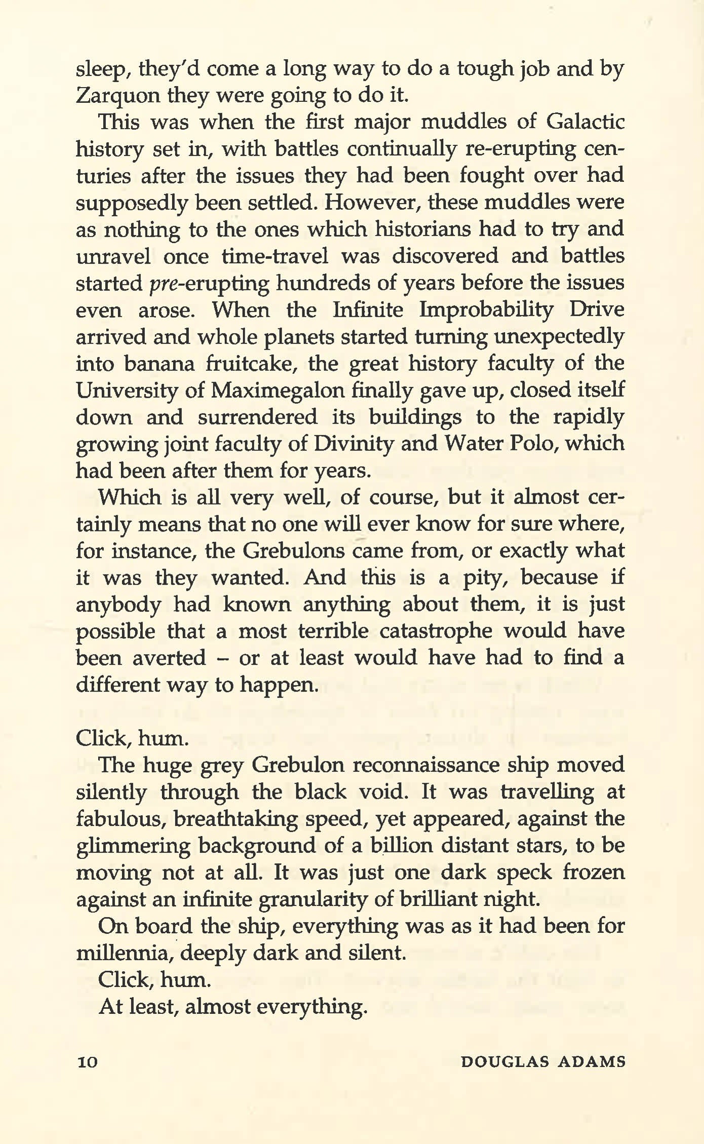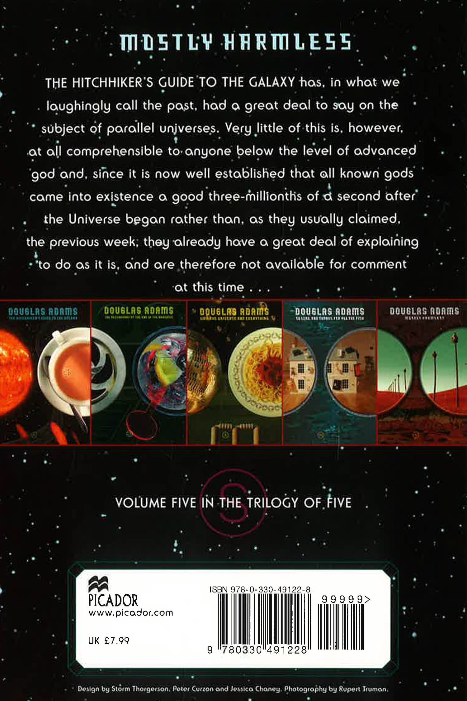 Mostly Harmless: The Hitchhiker's Guide to the Galaxy Part Five The Hitchhiker's Guide to the Galaxy has, in what we laughingly call the past, a great deal to say on the subject of parallel universes. Very little of this is, however, at all comprehensible to anyone below the level of Advanced God, and since it is now well-established that all known gods came into existence a good three millionths of a second after the Universe began rather than, as they usually claimed, the previous week, they already have a great deal of explaining to do as it is, and are therefore not available for comment at this time . . .