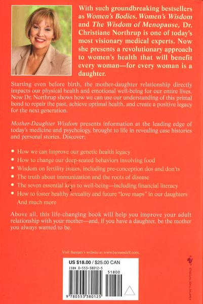 With such groundbreaking bestsellers as Women's Bodies, Women's Wisdom and The Wisdom of Menopause, Dr. Christiane Northrup is one of today's most trusted and visionary medical experts. Now she presents her most profound and revolutionary approach to women's health. . . . The mother-daughter relationship sets the stage for our state of health and well-being for our entire lives. Because our mothers are our first and most powerful female role models, our most deeply ingrained beliefs about ourselves as women come from them. And our behavior in relationships--with food, with our children, with our mates, and with ourselves--is a reflection of those beliefs. Once we understand our mother-daughter bonds, we can rebuild our own health, whatever our age, and create a lasting positive legacy for the next generation. Mother-Daughter Wisdom introduces an entirely new map of female development, exploring the "five facets of feminine power," which range from the basics of physical self-care to the discovery of passion and purpose in life. This blueprint allows any woman--whether or not she has children---to repair the gaps in her own upbringing and create a better adult relationship with her mother. If she has her own daughter, it will help her be the mother she has always wanted to be. Drawing on patient case histories and personal experiences, Dr. Northrup also presents findings at the cutting edge of medicine and psychology. Discover: -How to lay the nutritional foundation to prevent eating disorders and adult diseases -The truth about the immunization controversy-and the true meaning of immunity -How we can change our genetic health legacy -Why financial literacy is essential to women's health -How to foster healthy sexuality and future "love maps" in our daughters -How to balance independence with caring, and individual growth with family ties Written with warmth, enthusiasm, and rare intelligence, Mother-Daughter Wisdom is an indispensable book destined to change lives and become essential reading for all women. From the Hardcover edition. *This book may have remainder mark*