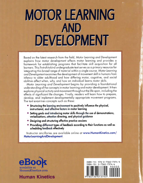 Based on the latest research from the field, Motor Learning and Development explains how motor development affects motor learning and provides a framework for establishing programs that facilitate skill acquisition for all learners. This first-of-its-kind undergraduate text serves as a primary resource for integrating this broad range of material within a single course. Motor Learning and Development examines the development of movement skill in humans from infancy to older adulthood and how differing motor, cognitive, and social abilities affect when, why, and how an individual learns motor skills. Motor Learning and Development begins by providing a foundational understanding of the concepts in motor learning and motor development. Readers will discover the fundamental motor skills developed during childhood as well as the individual functional and structural constraints present in childhood and adolescence. Next, readers explore physical activity and movement in relationship to young, middle, and older adulthood (including the effects of significant life changes such as leaving home, entering the workforce, getting married, and having children) and the social and psychological changes associated with retirement and aging. A unique conclusion brings the text's concepts together to illustrate how to design developmentally appropriate programs for all types of learners. Building on the theoretical knowledge of previous chapters, readers will also learn how to prepare, develop, and implement developmentally appropriate movement programs. The text examines concepts such as these: -Structuring the learning environment to positively influence the physical, instructional, and affective factors in motor learning -Setting goals and introducing motor skills through the use of demonstrations, verbalizations, attention directing, and physical guidance -Designing and structuring effective practice sessions -Types of feedback and their functions as well as effective feedback scheduling Learning features in each chapter include an opening scenario, activity and lab suggestions, chapter summaries, and glossary terms. In addition, sidebars provide opportunities for readers to increase their understanding. Research Notes present accessible summaries of notable research in both fields, and Try This sections detail a simple task for students to perform during class or study. In addition, What Do You Think? questions promote critical thinking and encourage research-to-practice understanding of the material. When used as a course text, Motor Learning and Development includes a test package and image bank to assist instructors in combining these two large content areas into a single course. The image bank includes most of the figures, tables, and photos from the book as well as a blank PowerPoint template. Instructors can easily build their own tests and quizzes using multiple-choice, true-or-false, and short-answer questions found within the test package. These resources are available online and are free to course adopters. Motor Learning and Development provides an excellent framework for understanding both fields of study as well as the ways in which motor learning and motor development affect one another. By providing a thorough understanding of the factors that drive the development of motor skills throughout the life span, Motor Learning and Development assists future and current movement educators in teaching movement skills to learners at any age and skill level.