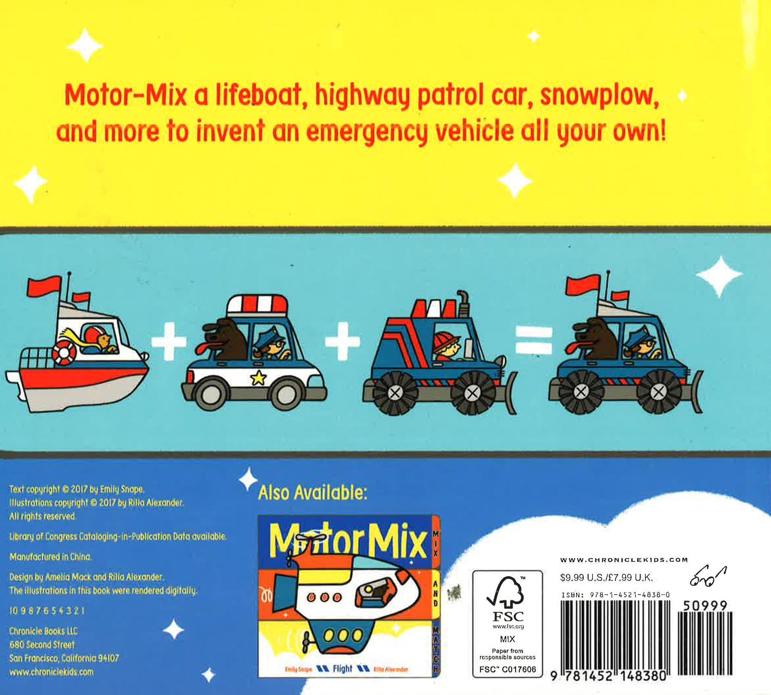 Motor-Mix a lifeboat, highway patrol car, snowplow, and more to invent an emergency vehicle all your own! Mix-and-match emergency vehicles to create entirely new constructions. The text-focusing on movement, sound, and location-can be mixed-and-matched as well, resulting in both silly sentences and educational fun.