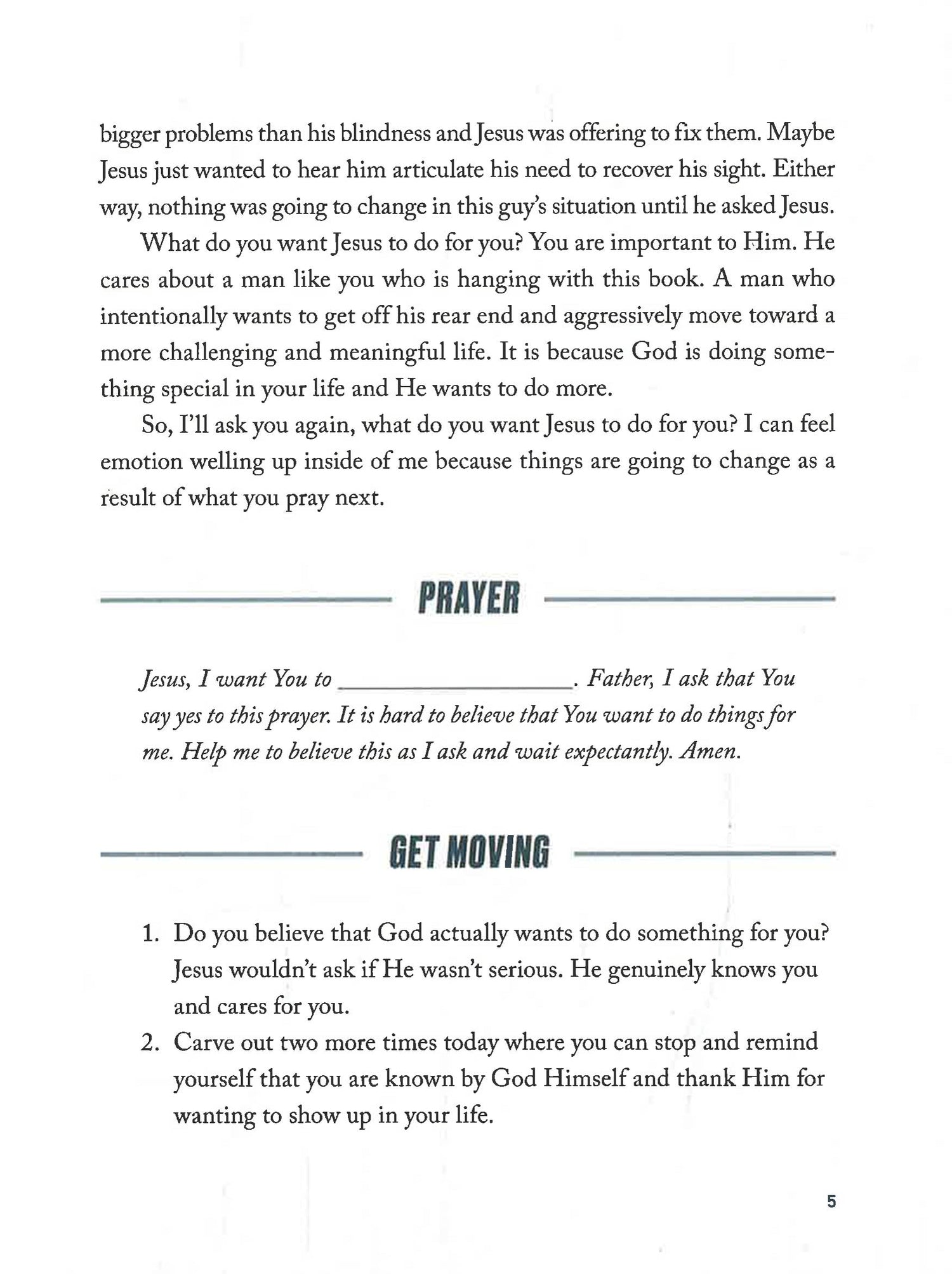 Propel your life forward with this devotional just for men as you dig into Scripture, strengthen your prayer life, and take practical challenges designed to get you off your spiritual couch and into a more fulfilling life.