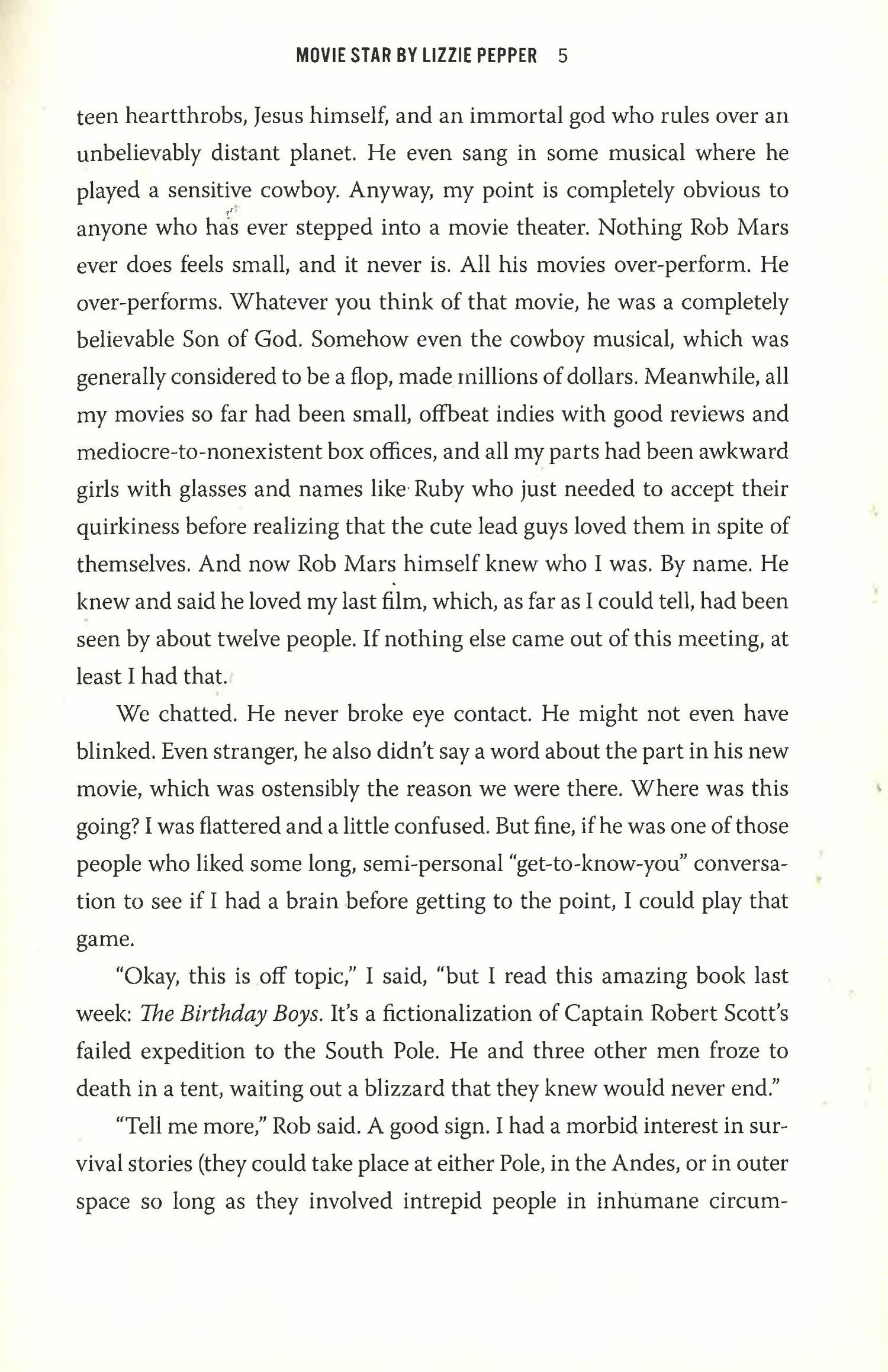 Celebrity ghostwriter Hilary Liftin chronicles the tabloids’ favorite marriage as Lizzie Pepper realizes that, when the curtain falls, her romance isn’t what she and everyone else thought. From her lonely holidays in sumptuous villas to her husband’s deep commitment to a disconcertingly repressive mind-body group, Lizzie reveals a side of fame that her fans never get to see. Full of twists and turns, Movie Star by Lizzie Pepper is a breathless journey to the heights of Hollywood power and royalty and a life in the spotlight that is nearly impossible to escape.