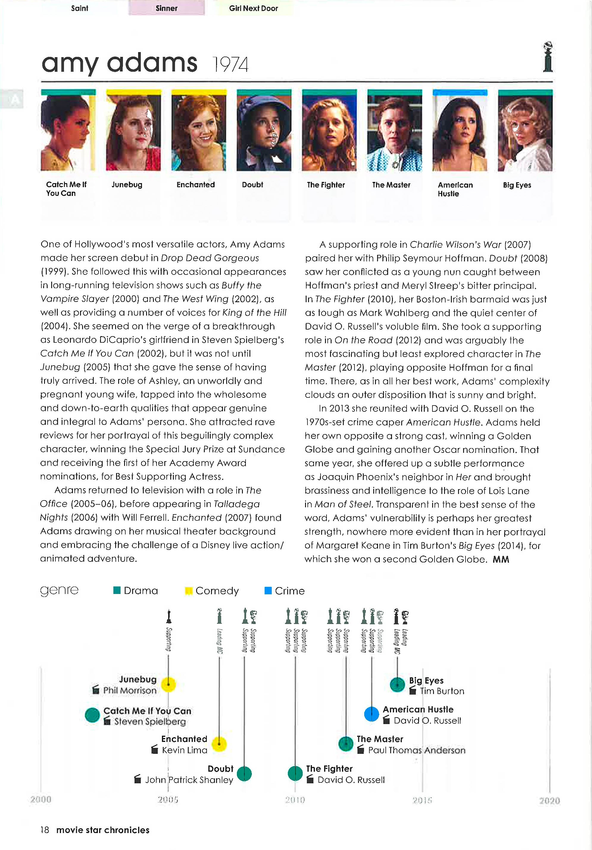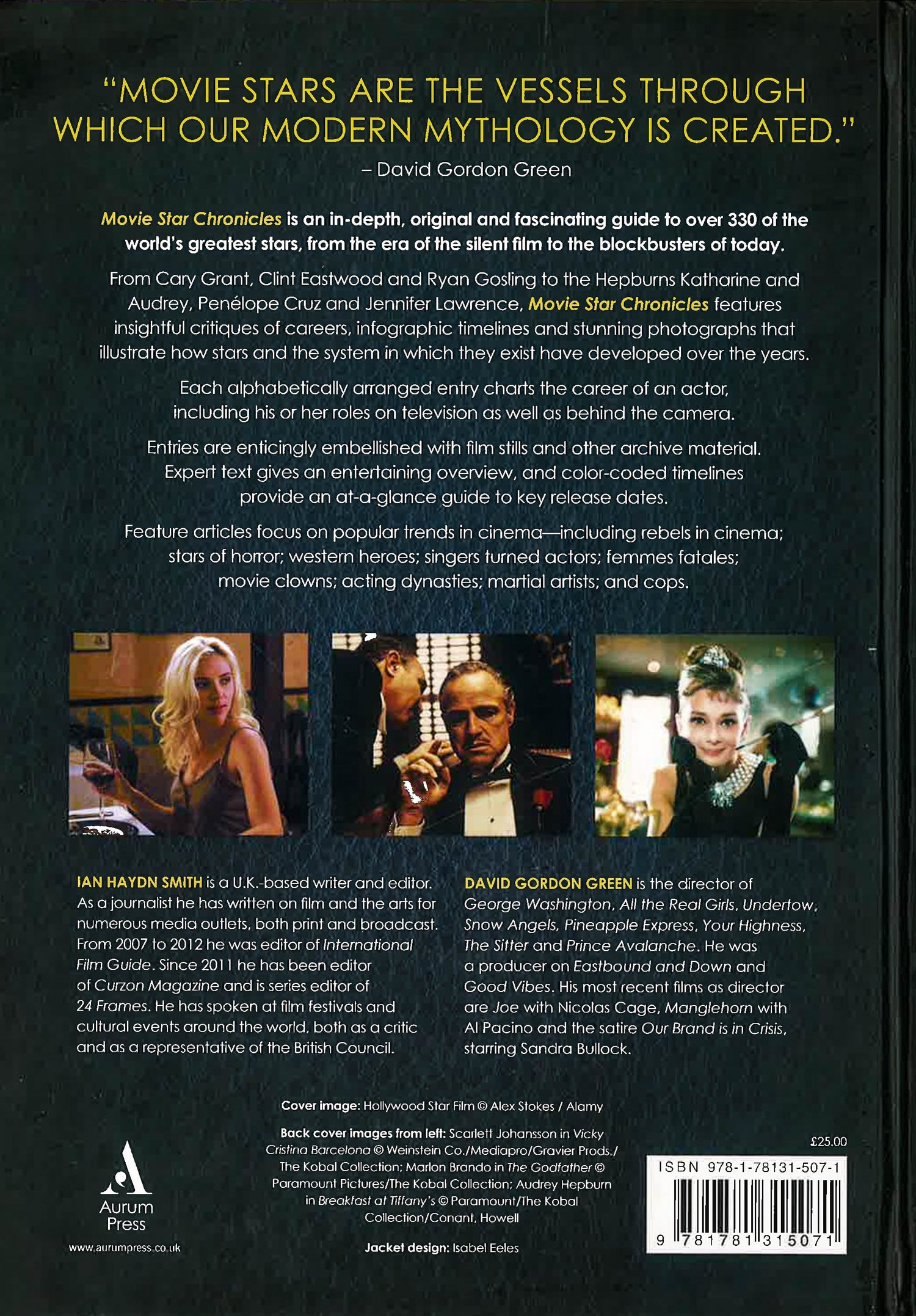 Movie Star Chronicles" is an in-depth, original and fascinating guide to 320 of the world's greatest stars, from the era of silent film to the blockbusters of today. It will include stars such as Cary Grant, Clint Eastwood and Ryan Gosling, as well as Audrey Hepburn, Penelope Cruz and Jennifer Lawrence, giving a critique of their careers, infographic timelines and stunning photographs to show how they developed. The text is written by a team of experts and overseen by Ian Haydn Smith to give an entertaining overview. The colour-coded timelines offer at-a-glance guides to the key releases. There will also be feature spreads on particular themes, such as femme fatales, westerns, cops and acting dynasties.
