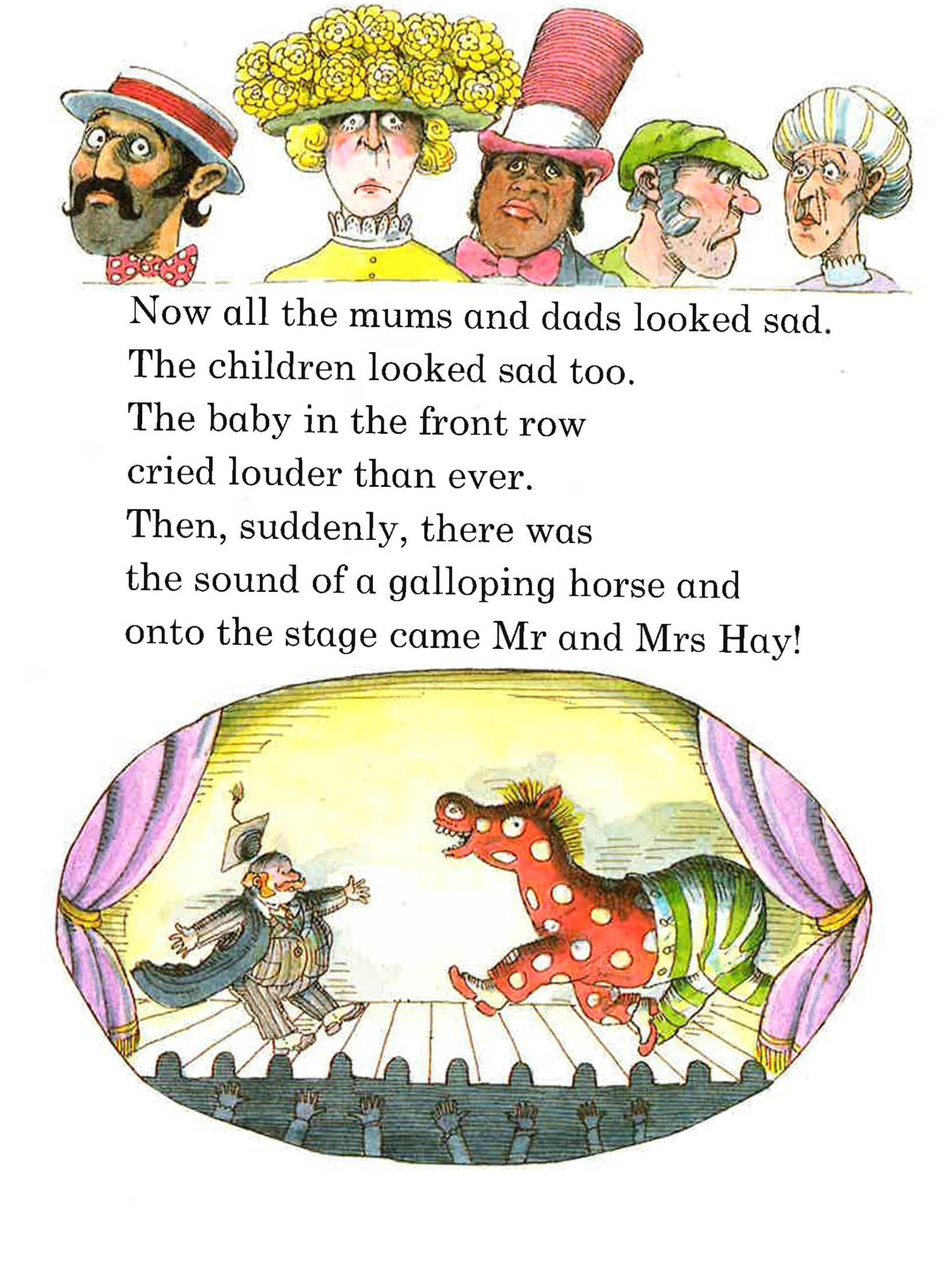 Mr and Mrs Hay are a horse! Every day they climb into their horse suit (she's the back, he's the front) and perform at the circus. But as their children Henry and Henrietta grow up, their galloping parents begin to embarrass them ... Based on the classic `Happy Families' card game, this highly entertaining series is ideal for reading and sharing at home or at school. It is guided by the Education Adviser, Brian Thompson, and written by the award-winning author, Allan Ahlberg. `The best thing to happen to beginner readers since Dr Seuss' Children's Rights Workshop