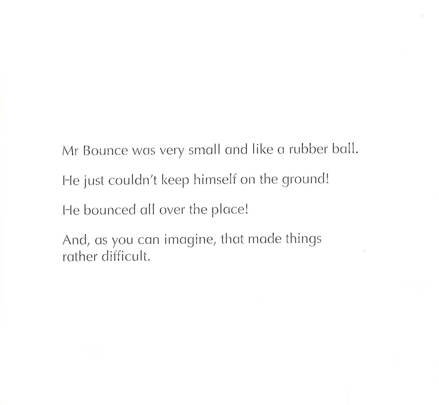 The spring in his step has got Mr. Bounce down. Can a pair of heavy boots help lift his spirits? The Mr Men and Little Miss have been delighting children for generations with their charming and funny antics. Bold illustrations and funny stories make Mr Men and Little Miss the perfect story time experience for children aged two up. Have you met them all? It all started with a tickle. Roger Hargreaves' son Adam asked him what a tickle looked like. In response, Roger drew a small orange man with extraordinarily long arms that could reach anywhere and tickle anyone. Mr Tickle, the first of the Mr Men, was born. Mr Tickle was soon joined by Mr Greedy, Mr Happy, Mr Nosey, Mr Sneeze and Mr Bump. The books were an instant hit and Roger went on to create many more Mr Men and Little Miss characters. What Roger really wanted was to make children laugh, which is probably why his own favourite character is Mr Silly.