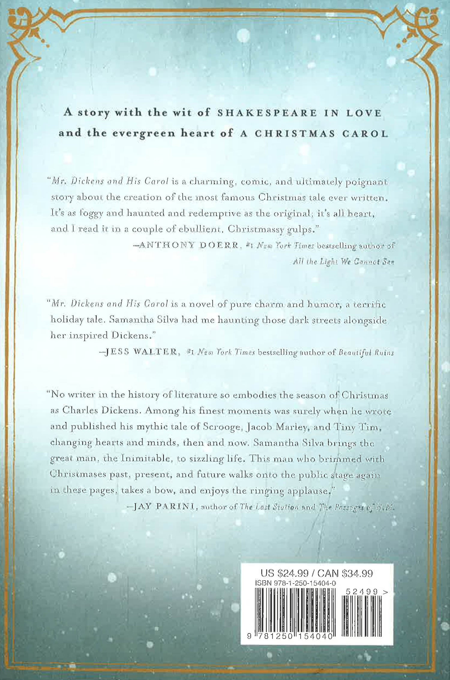 For Charles Dickens, each Christmas has been better than the last. His novels are literary blockbusters, and he is famous on the streets of London, where avid fans sneak up on him to snip off pieces of his hair. He and his wife have five happy children, a sixth on the way, and a home filled with every comfort they could imagine. But when Dickens' newest book is a flop, the glorious life he has built for himself threatens to collapse around him. His publishers offer an ultimatum: either he writes a Christmas book in a month, or they will call in his debts, and he could lose everything. Grudgingly, he accepts, but with relatives hounding him for loans, his wife and children planning an excessively lavish holiday party, and jealous critics going in for the kil I, he is hardly feeling the Christmas spirit Increasingly frazzled and filled with self-doubt, Dickens seeks solace and inspiration in London itself, his great palace of thinking. And on one of his long walks, in a once-beloved square, he meets a young woman in a purple cloak, who might be just the muse he needs. Eleanor Lovejoy and her young son, Timothy, propel Dickens on a Scrooge-like journey through his Christmases past and present but with time running out, will he find the perfect new story to save him? In prose laced with humour, sumptuous Victorian detail, and charming winks to A Christmas Carol, Samantha Silva breathes new life into an adored classic. Perfect for fans of Dickens, for readers of immersive historical fiction, and for anyone looking for a dose of Christmas cheer, Mr. Dickens and His Carol is destined to become a perennial holiday favourite.