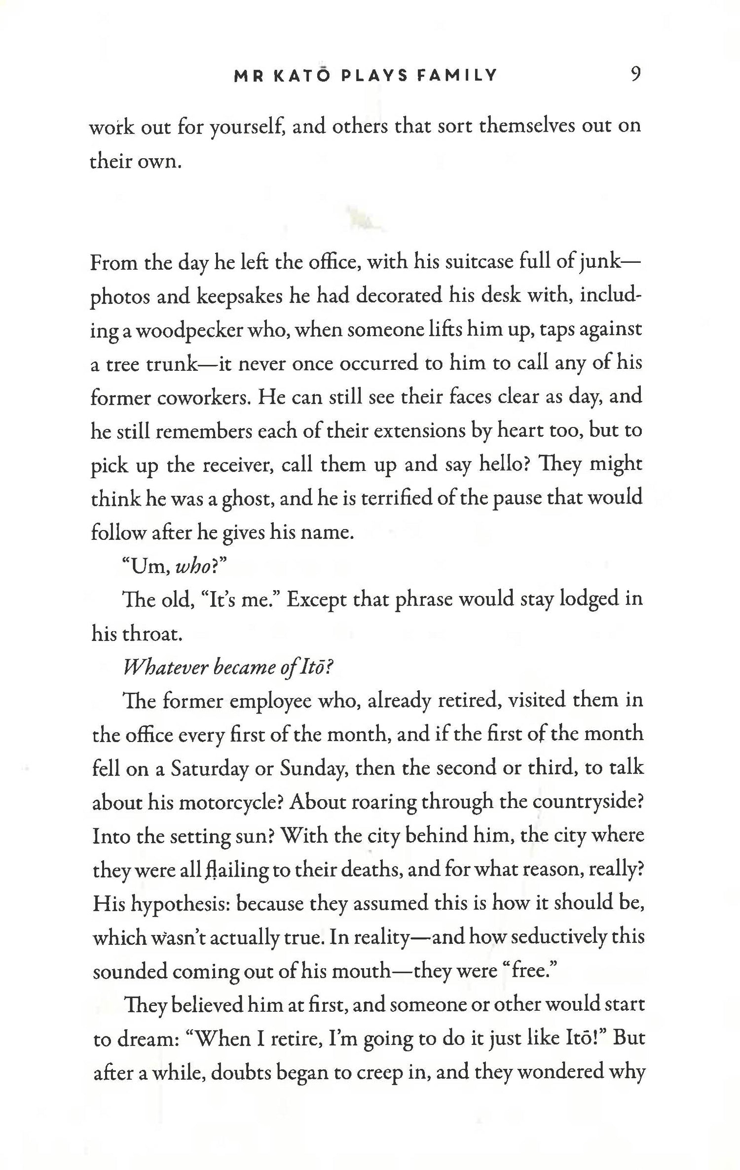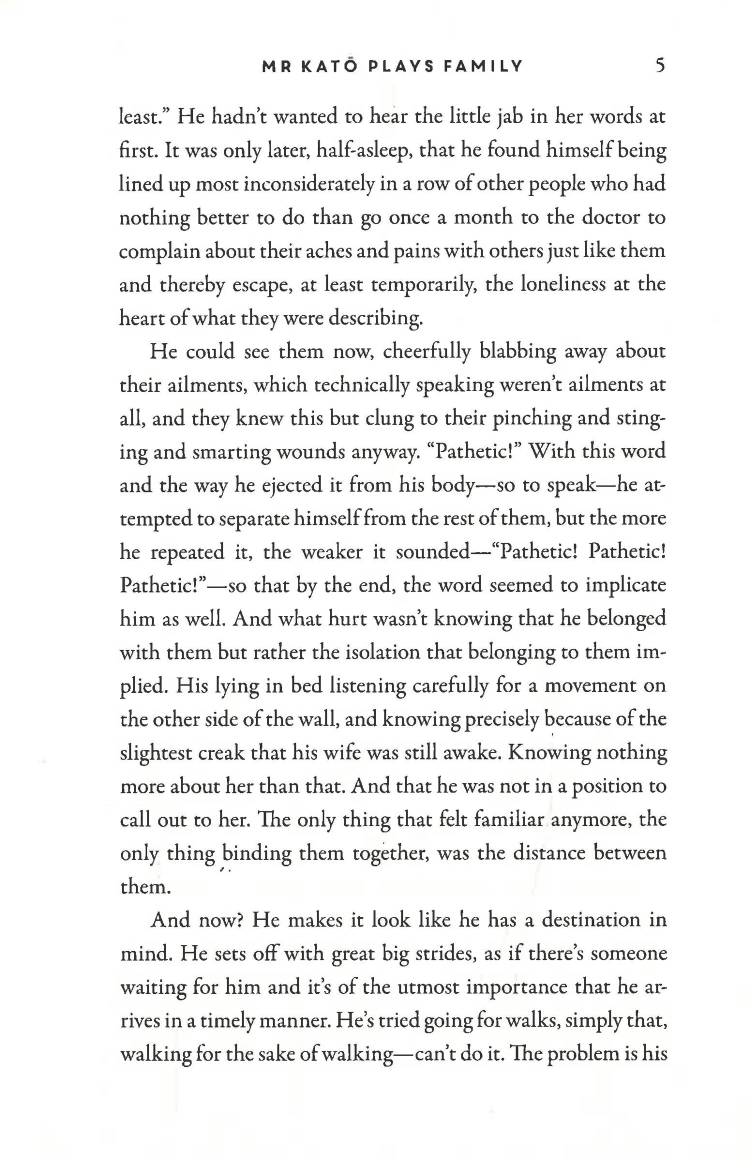 Mr Kato―a curmudgeon and recent retiree―finds his only solace during his daily walks, where he wonders how his life went wrong and daydreams about getting a dog (which his wife won’t allow). During one of these walks, he is approached by a young woman. She calls herself Mie, and invites him to join her business Happy Family, where employees act as part-time relatives or acquaintances for clients in need, for whatever reason, if only for a day. At first reluctant, but then intrigued, he takes the job without telling his wife or adult children. Through the many roles he takes on, Mr Kato rediscovers the excitement and spontaneity of life, and re-examines his role in his own family. Using lessons learned with his “play families,” he strives to reconnect with his loved ones, to become the father and husband they deserve, and to live the life he’s always wanted.