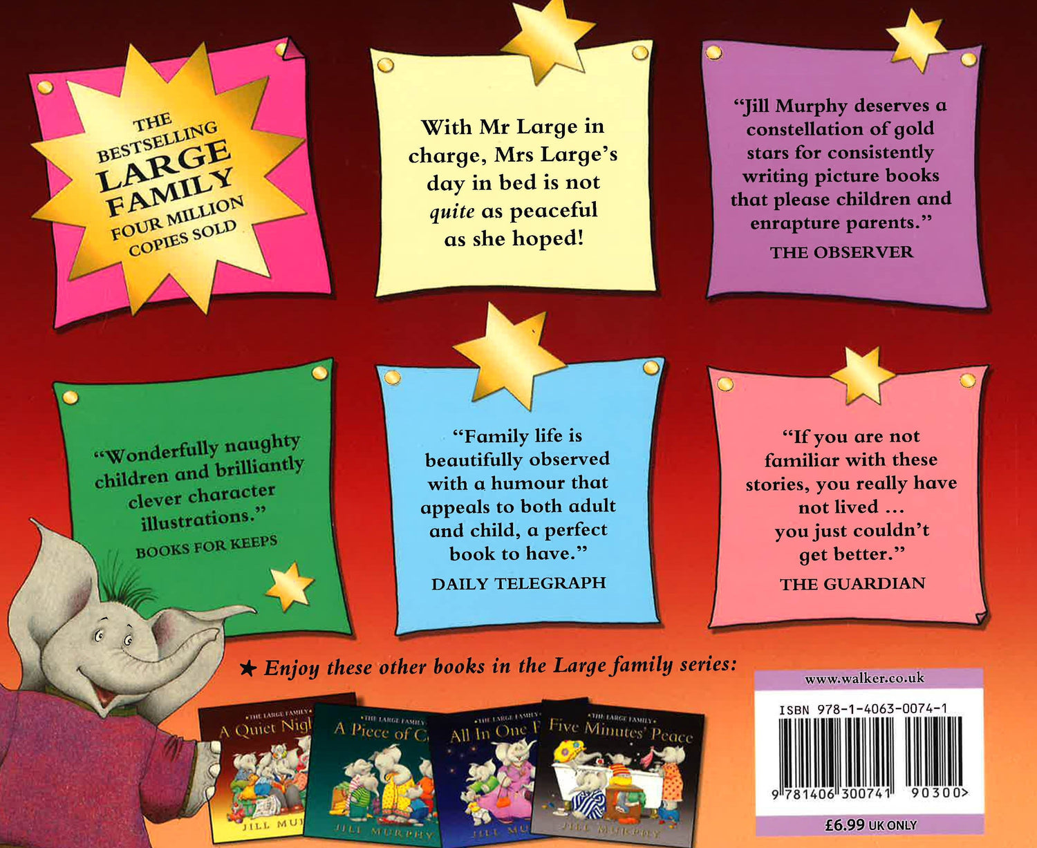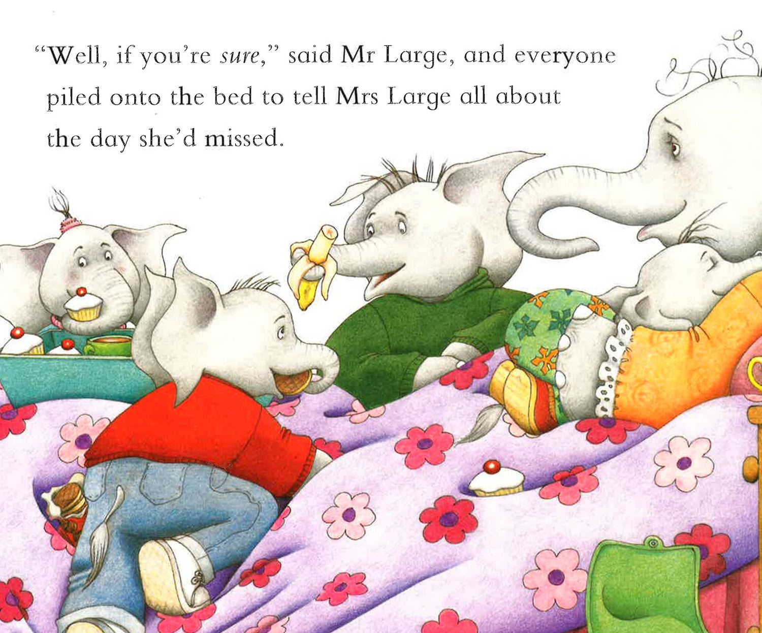 The bestselling Large Family are back in a charming new tale of family life! Mrs Large isn't feeling well so Mr Large sends her back to bed. "I'll take charge," he says. So while he and the children get busy hoovering, dusting and tidying, Mrs Large settles down for a nice rest. But Mrs Large's restful day is not as restful as she'd hoped!