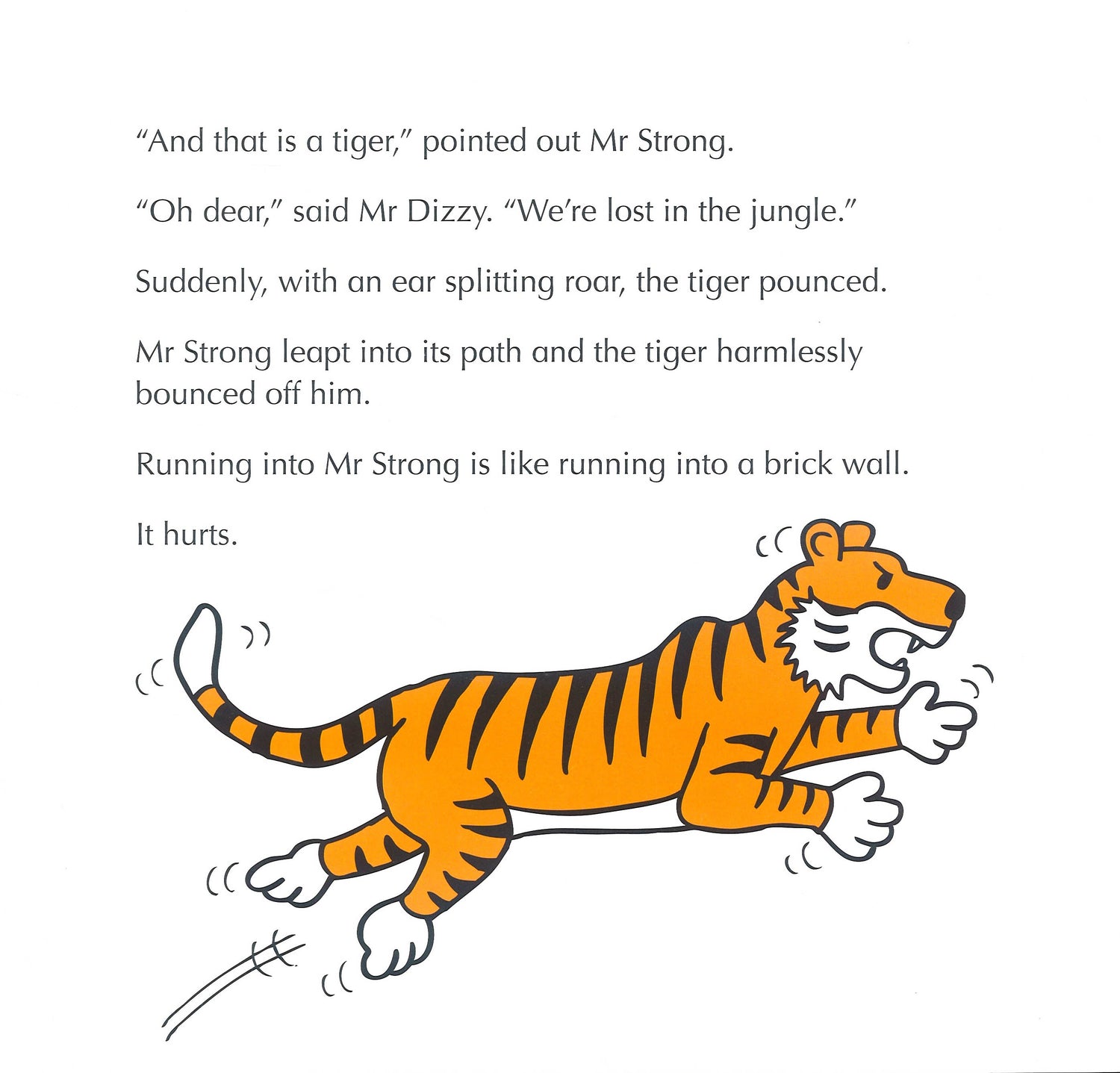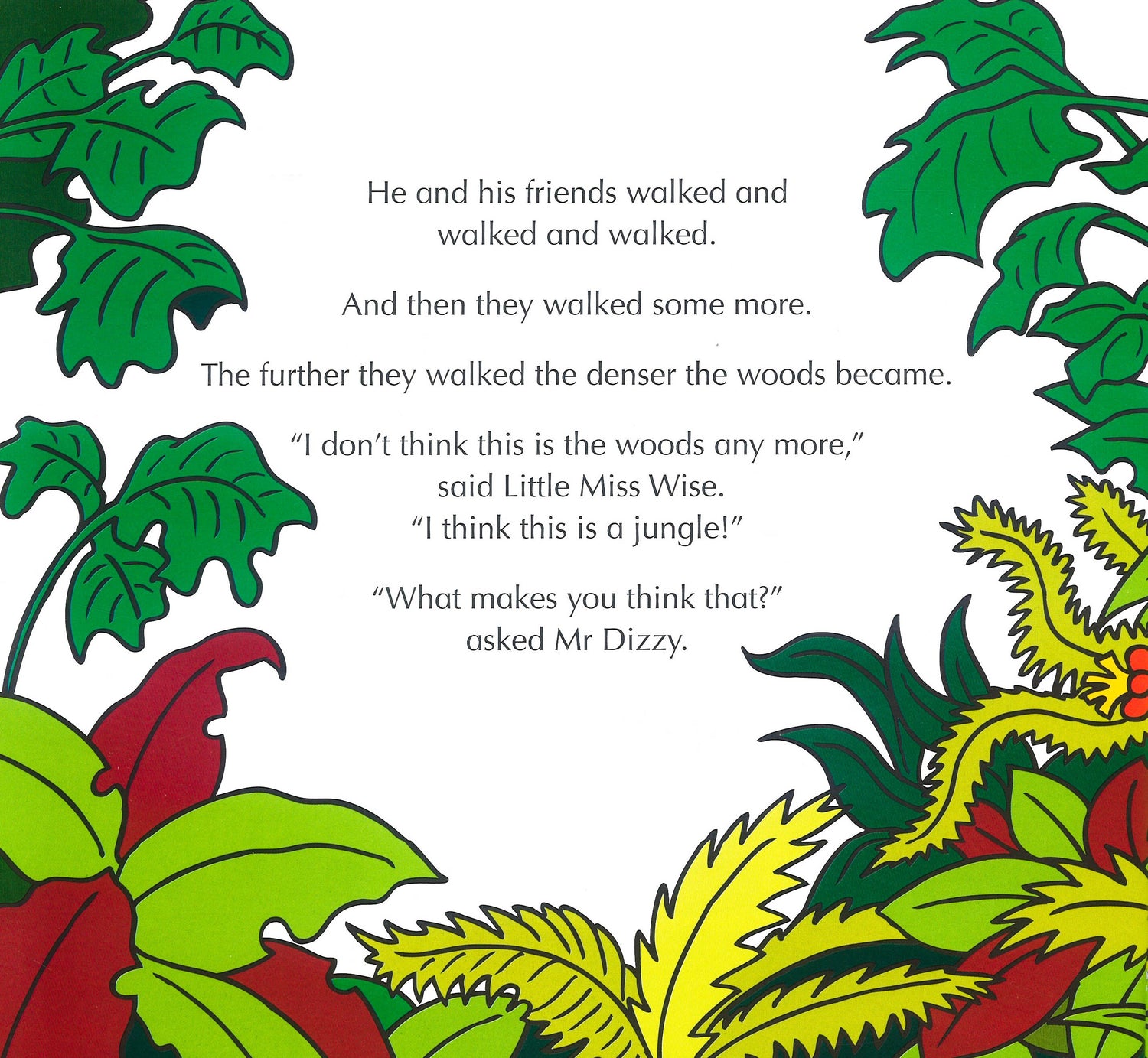 After one wrong turn, Mr Dizzy's walk in the woods with friends becomes an adventure in the jungle with tangled vines and wild animals. How will the Mr Men escape and find their way back home? The Mr Men and Little Miss Adventures take Roger Hargreaves' beloved characters on amazing trips to other worlds and different times where they have all kinds of funny and exciting escapades. The books are a new larger format, so that you can enjoy their inimitable stories in even greater scale. Bold illustrations and funny stories make Mr Men and Little Miss the perfect story time experience for children aged two up Have you collected all the Adventures: Mr. Men Adventure with Dinosaurs Mr. Men Adventure in Egypt Mr. Men Adventure with Knights Mr. Men Adventure with Pirates Mr. Men Adventure on Wheels It all started with a tickle. Roger Hargreaves' son Adam asked him what a tickle looked like. In response, Roger drew a small orange man with extraordinarily long arms that could reach anywhere and tickle anyone. Mr Tickle, the first of the Mr Men, was born. Mr Tickle was soon joined by Mr Greedy, Mr Happy, Mr Nosey, Mr Sneeze and Mr Bump. The books were an instant hit and Roger went on to create many more Mr Men and Little Miss characters. What Roger really wanted was to make children laugh, which is probably why his own favourite character is Mr Silly.
