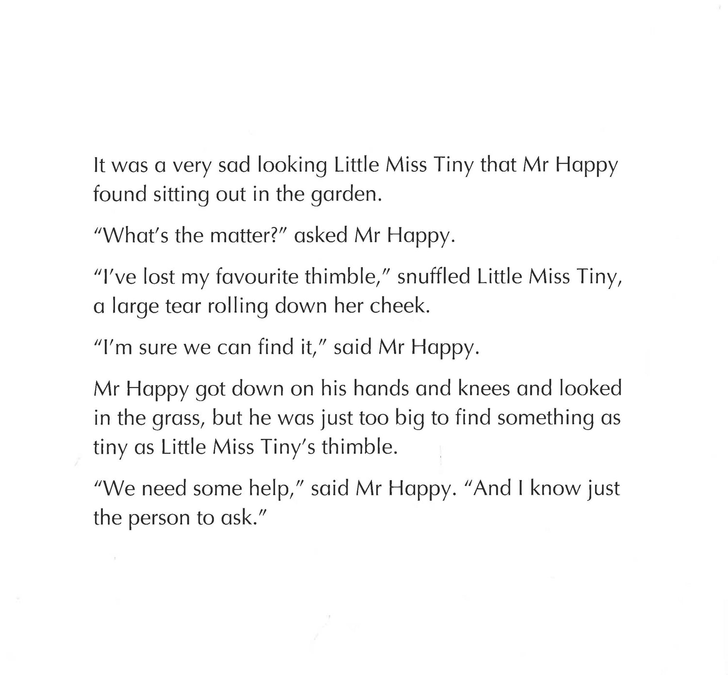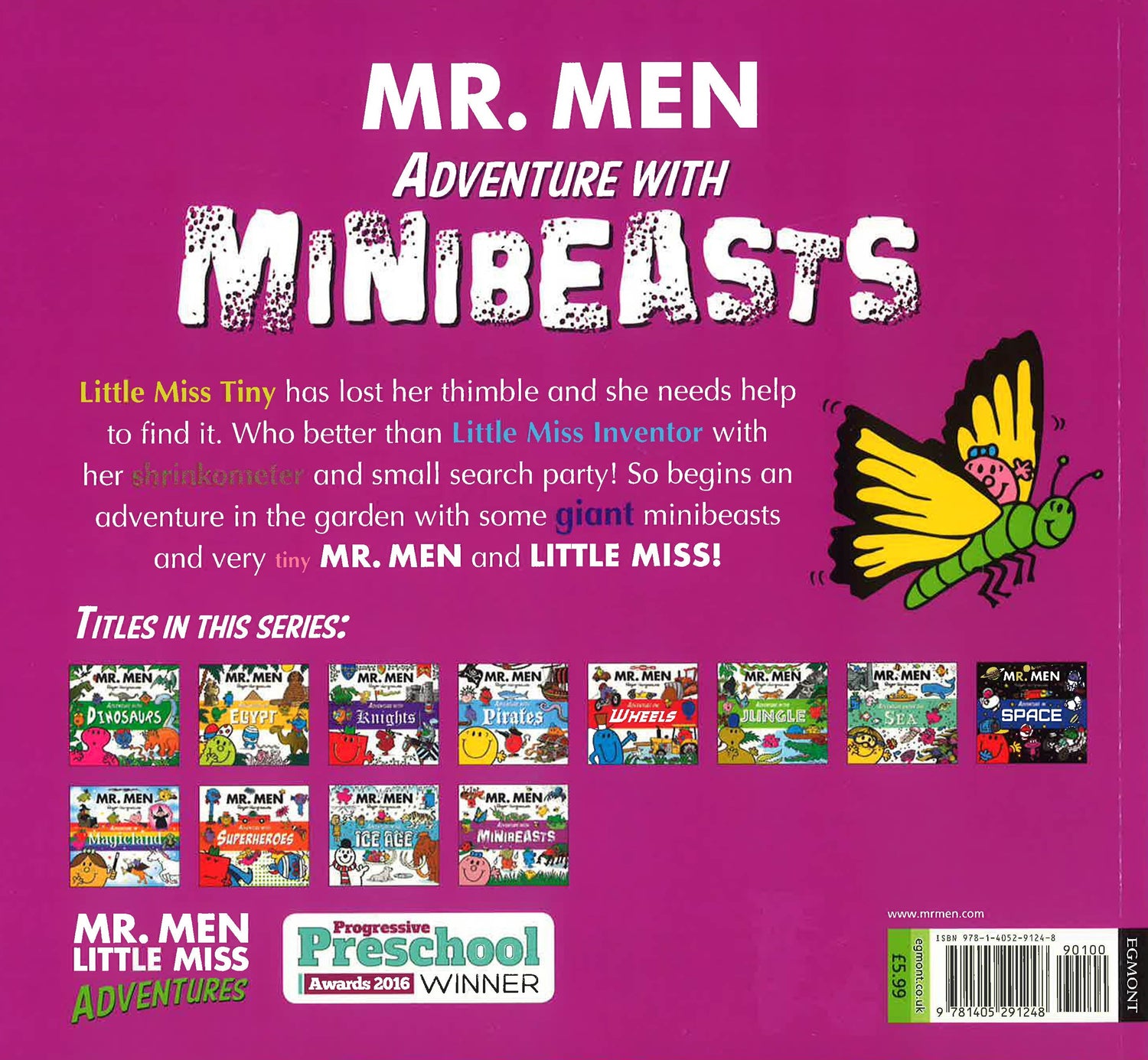 Little Miss Tiny has lost her thimble and she needs help to find it. Who better than Little Miss Inventor with her shrinkometer and small search party! So begins an adventure in the garden with some giant minibeasts and very tiny Mr Men and Little Miss! The Mr Men and Little Miss Adventures take Roger Hargreaves' beloved characters on amazing trips to other worlds and different times where they have all kinds of funny and exciting escapades.