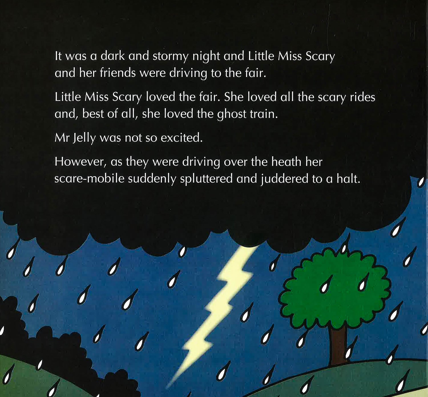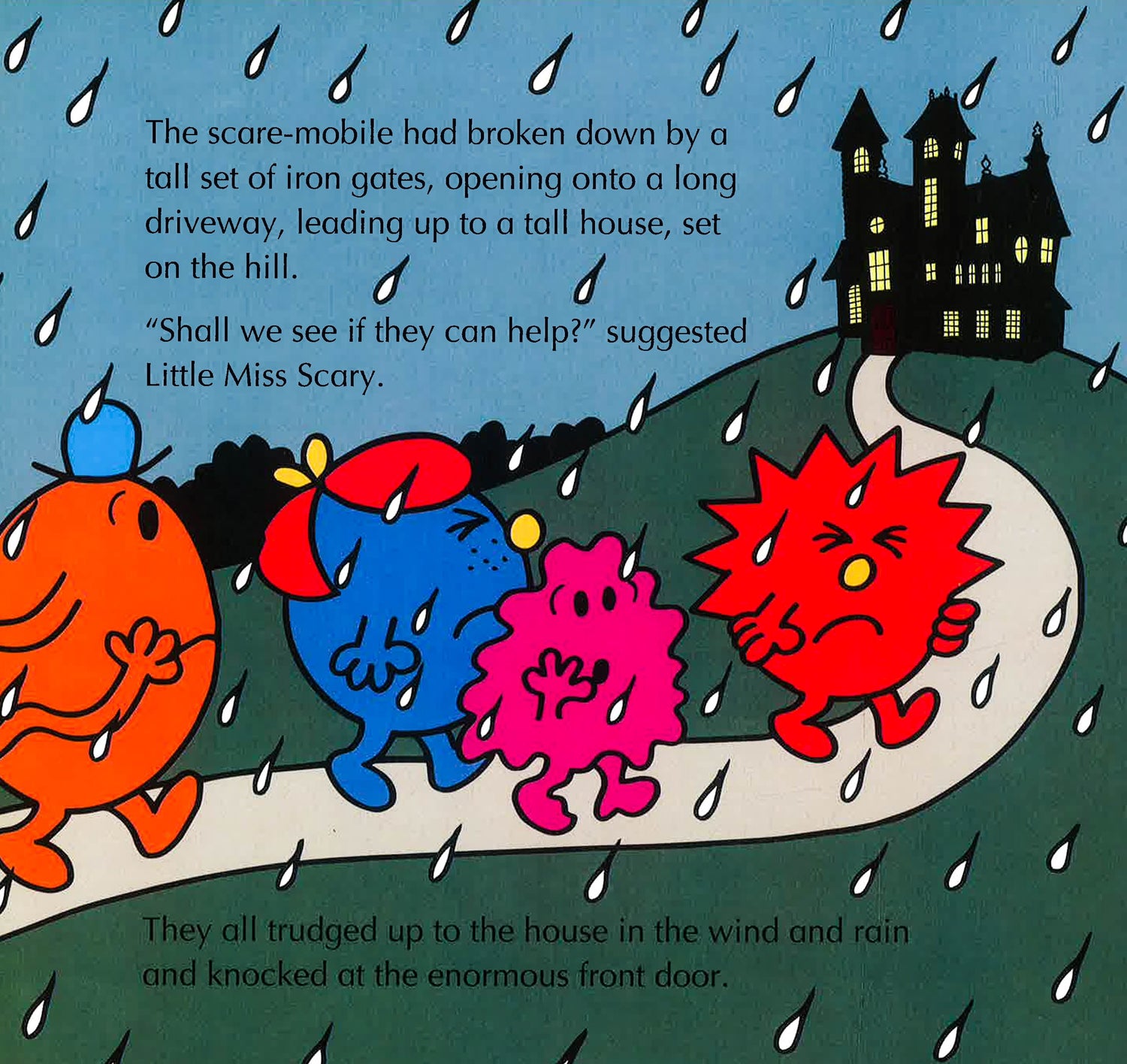 Little Miss Scary and her friends become stranded near a haunted house and encounter some spooky monsters including a mummy, a vampire and a werewolf! But when Mr Jelly accidentally chooses Big Foot's boot as his hiding place from the monsters, he learns that not all monsters are as scary as they seem.