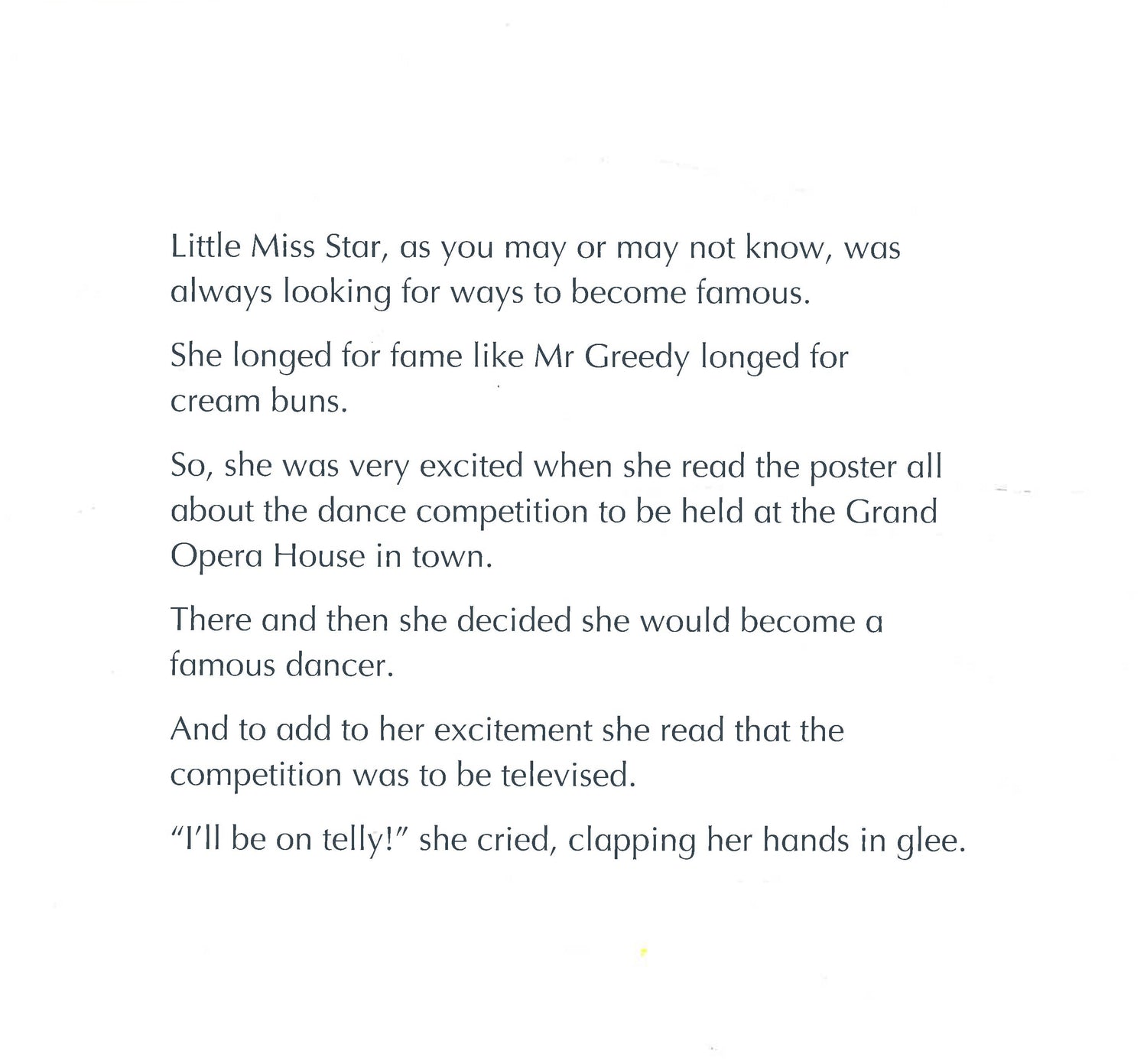 Little Miss Star is sure she’s found the perfect dance partner in Mr Perfect, but they’re up against stiff competition like Mr Slow and LM Quick’s slow, slow, quick, quick, slow foxtrot. Not to mention stiff criticism from the judges, who include Little Miss Splendid and Mr Fussy. Will any of them hold aloft their 10 paddle? Embrace the sparkle and enjoy the mayhem as you wait to find out who will lift the glitterball trophy!