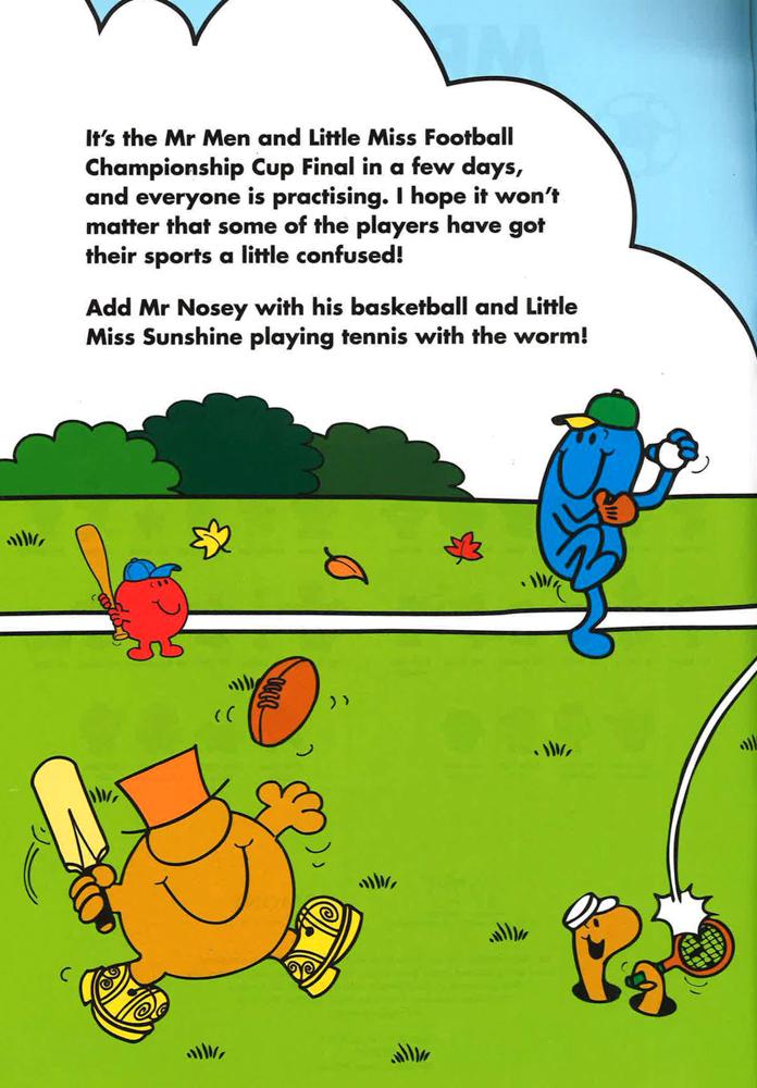 Join the Mr Men and Little Misses as they put on their football boots, blow their whistles and go for goal in a crazy game of football! This is a game in which anything could happen, and does...With Little Miss Bossy as umpire, Mr Bump injured in hospital and Mr Greedy's huge half-time snack, this is football, Mr Men style! Choose stickers of your favourite characters to complete the scenes of football mayhem! Perfect for kids aged 3 and up. Look out for: Mr. Men Sports Day Sticker Scene Book. It all started with a tickle. Roger Hargreaves' son Adam asked him what a tickle looked like. In response, Roger drew a small orange man with extraordinarily long arms that could reach anywhere and tickle anyone. Mr Tickle, the first of the Mr Men, was born. Mr Tickle was soon joined by Mr Greedy, Mr Happy, Mr Nosey, Mr Sneeze and Mr Bump. The books were an instant hit and Roger went on to create many more Mr Men and Little Miss characters. What Roger really wanted was to make children laugh, which is probably why his own favourite character is Mr Silly.