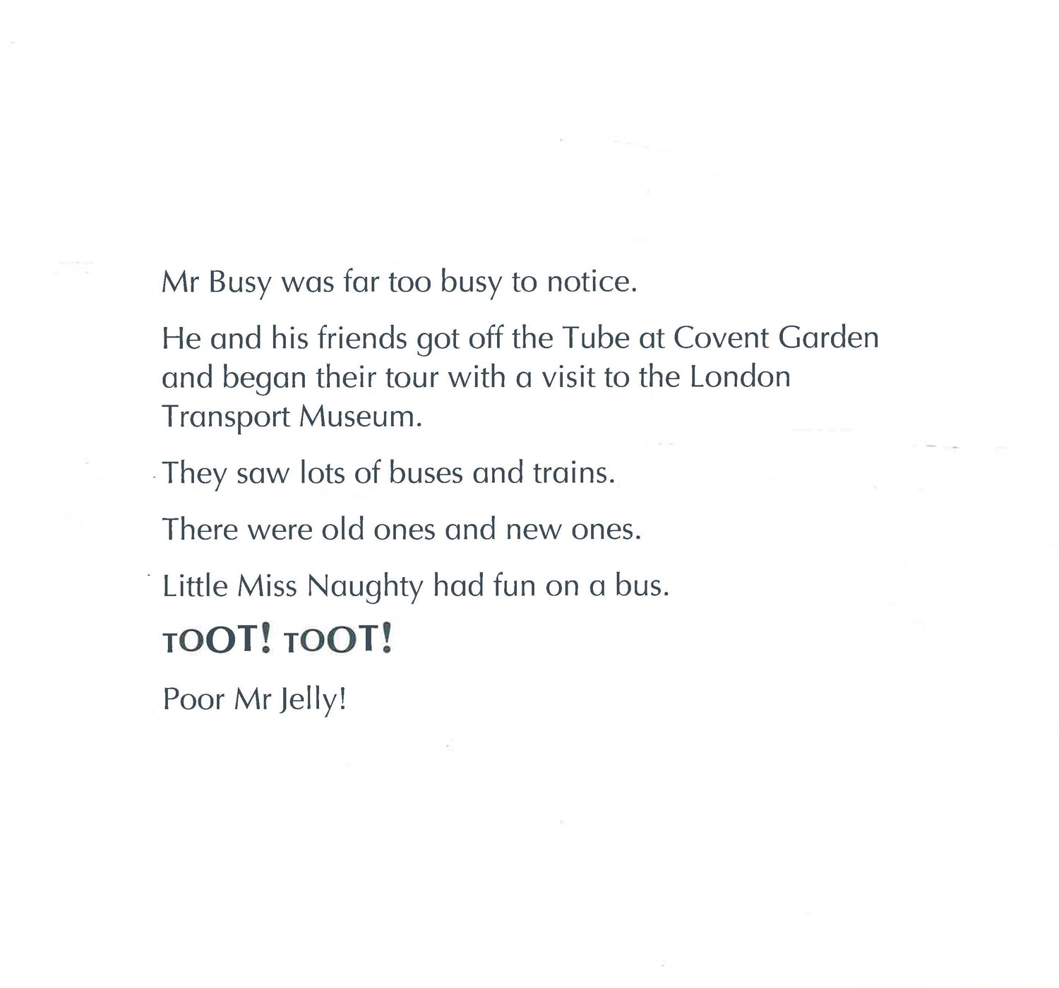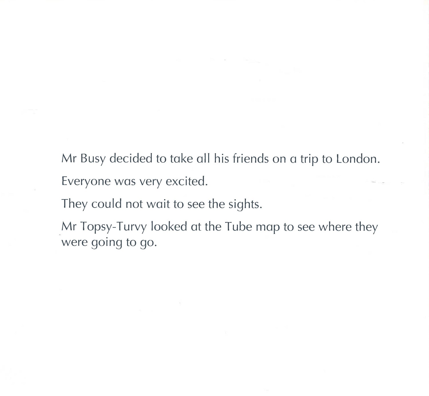 Join the Mr Men and the Little Miss as they travel by Tube, bus and boat on a very busy tour of London!