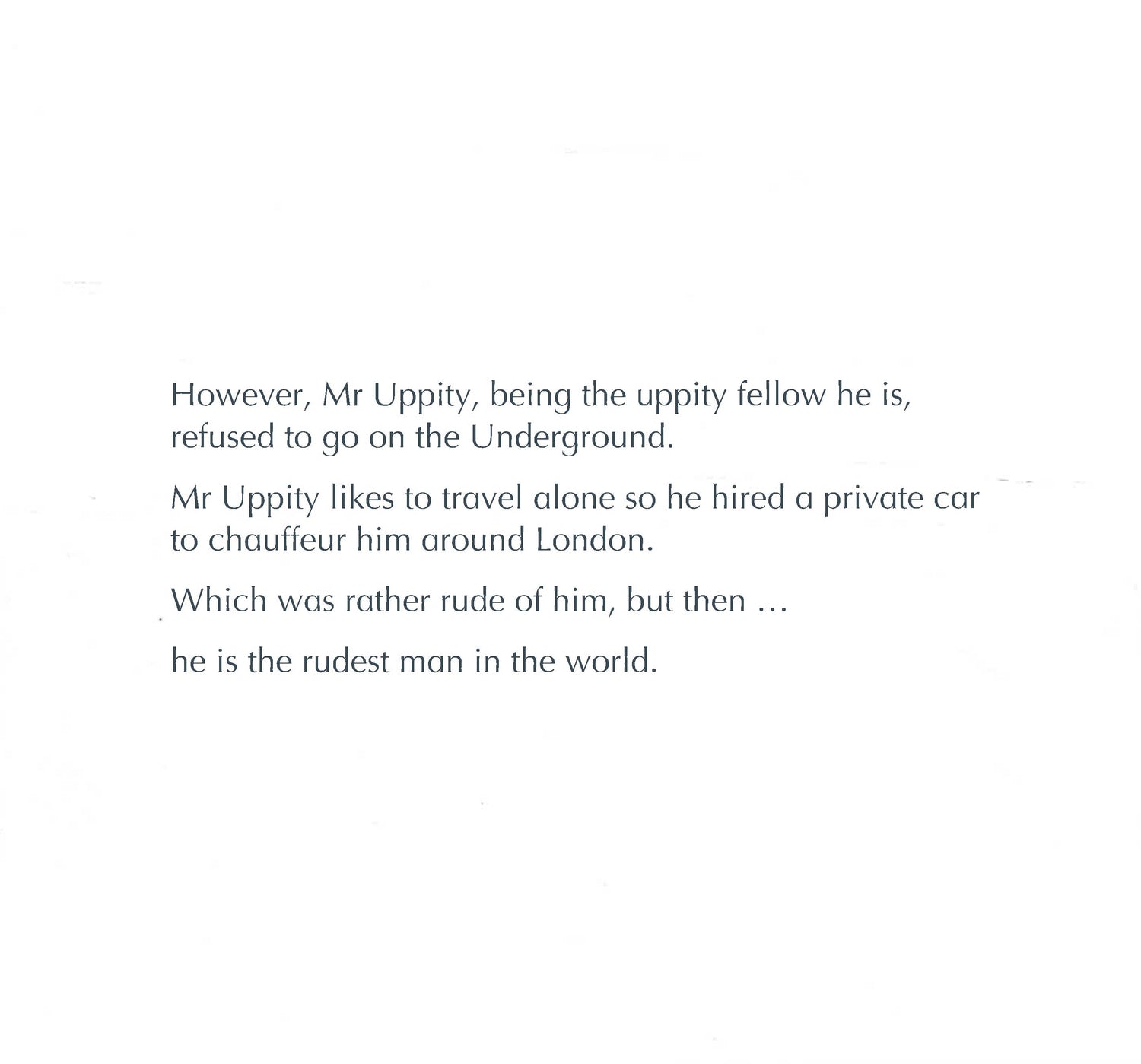The Mr Men are in London and everyone is very excited! Mr Busy is taking them on a tour of the sights, including Trafalgar Square, Buckingham Palace and the Tower of London. But will they get into a tangle on the tube and what will Mr Uppity make of it all?
