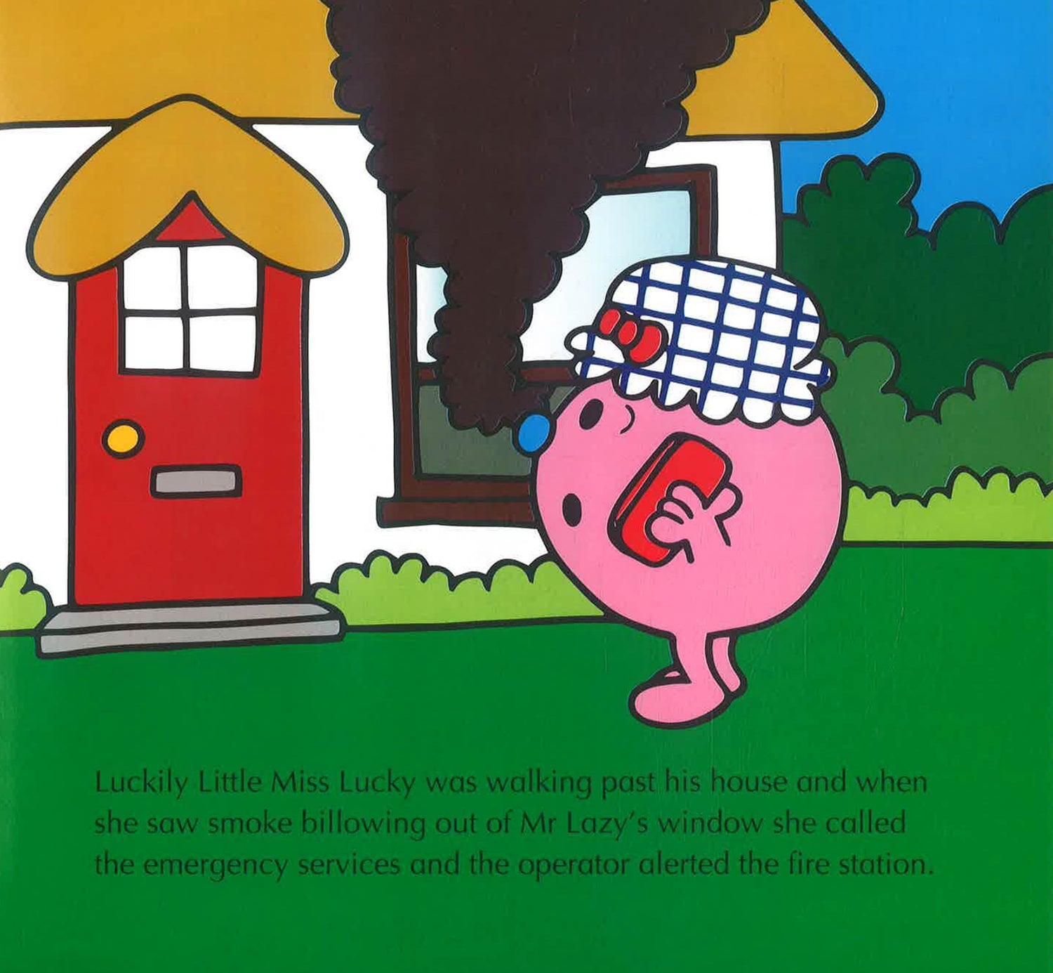 Mr Lazy is always falling asleep, but when he leaves his iron on during a nap, smoke is soon billowing out of his window! Will Officer Rush and the team of brave Mr Men and Little Miss firefighters come to his rescue in time?