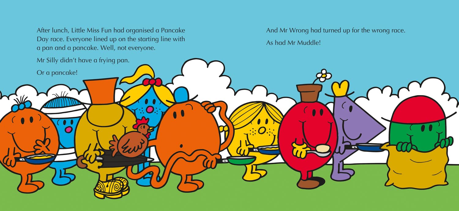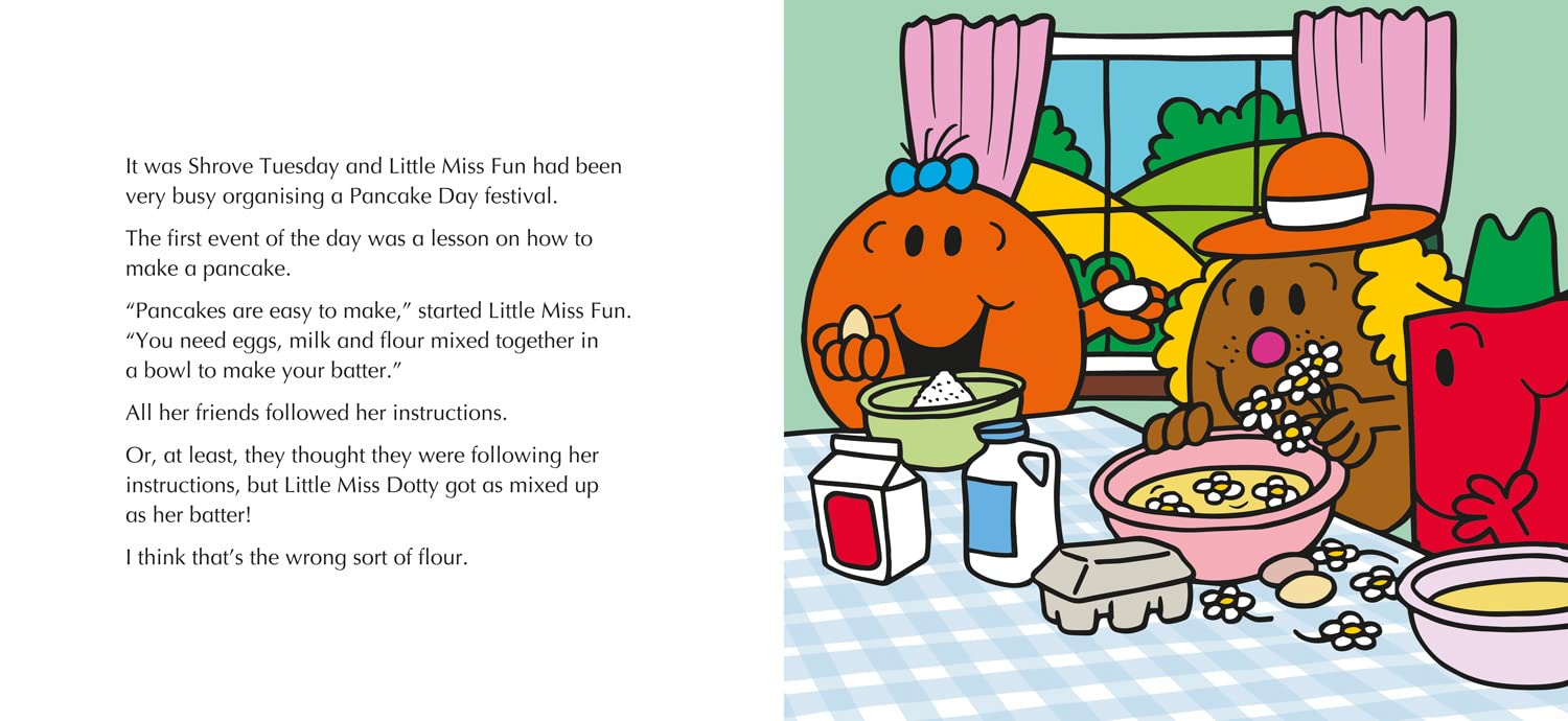 Little Miss Fun is organising a Pancake Day celebration for all her friends. With pancake making classes and a pancake day race, there’s plenty of messy mayhem and tasty treats to be had! But will the Mr Men and Little Miss manage the greatest feat of the day and flip the biggest pancake in the world?