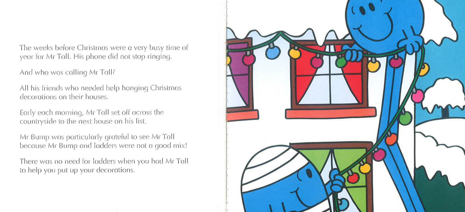 Little Miss Splendid and Mr Tall are judging the competition and are at the lighting up of each house, but there are many surprising choices of decorations and some that haven’t gone quite as planned! Who will be the winner this year?