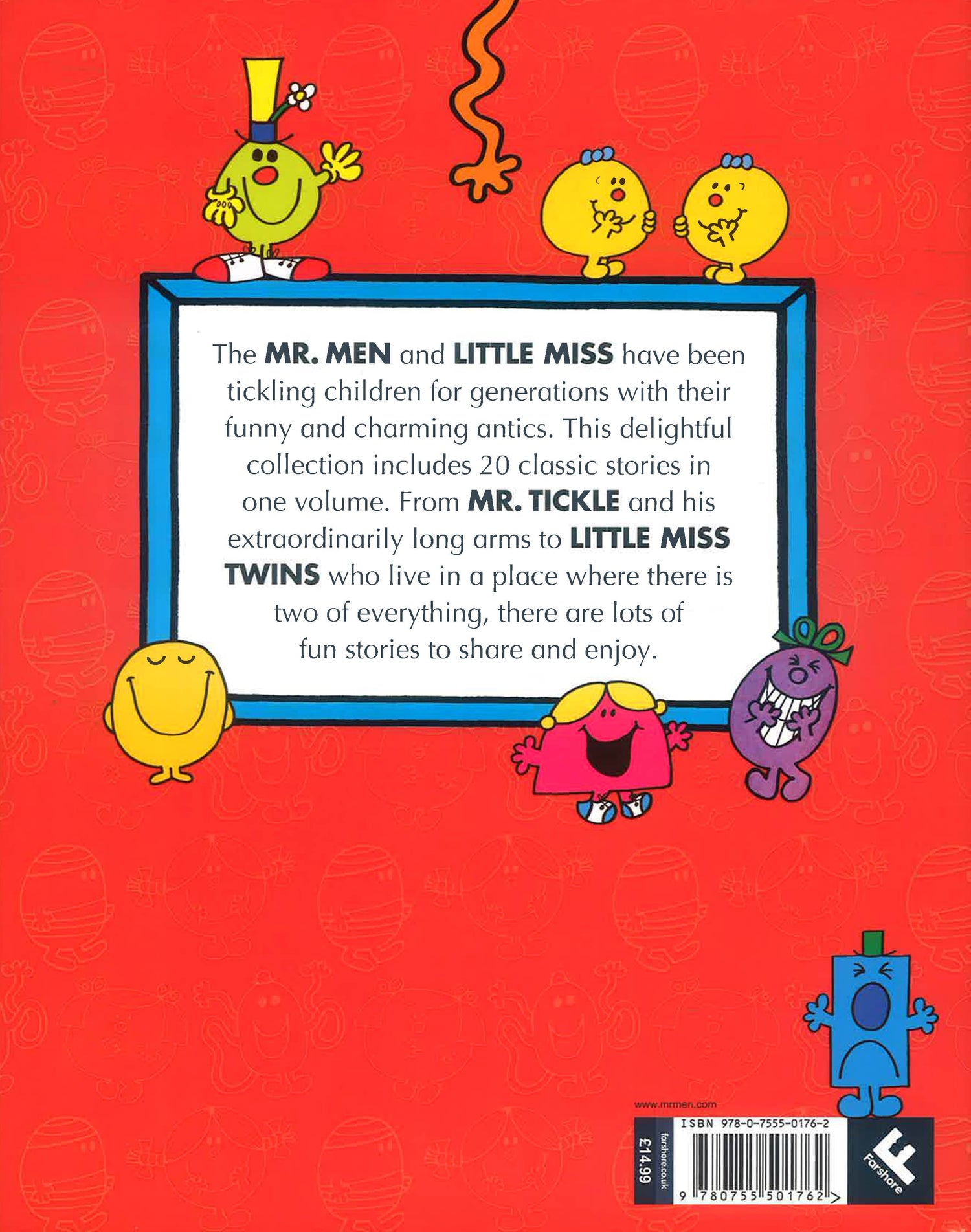 The Mr Men and Little Miss have been tickling children for generations with their funny and charming antics. This delightful collection includes 20 classic stories in one volume. From Mr Tickle and his extraordinarily long arms to Little Miss Twins who live in a place where there is two of everything, there are lots of fun stories to share and enjoy.