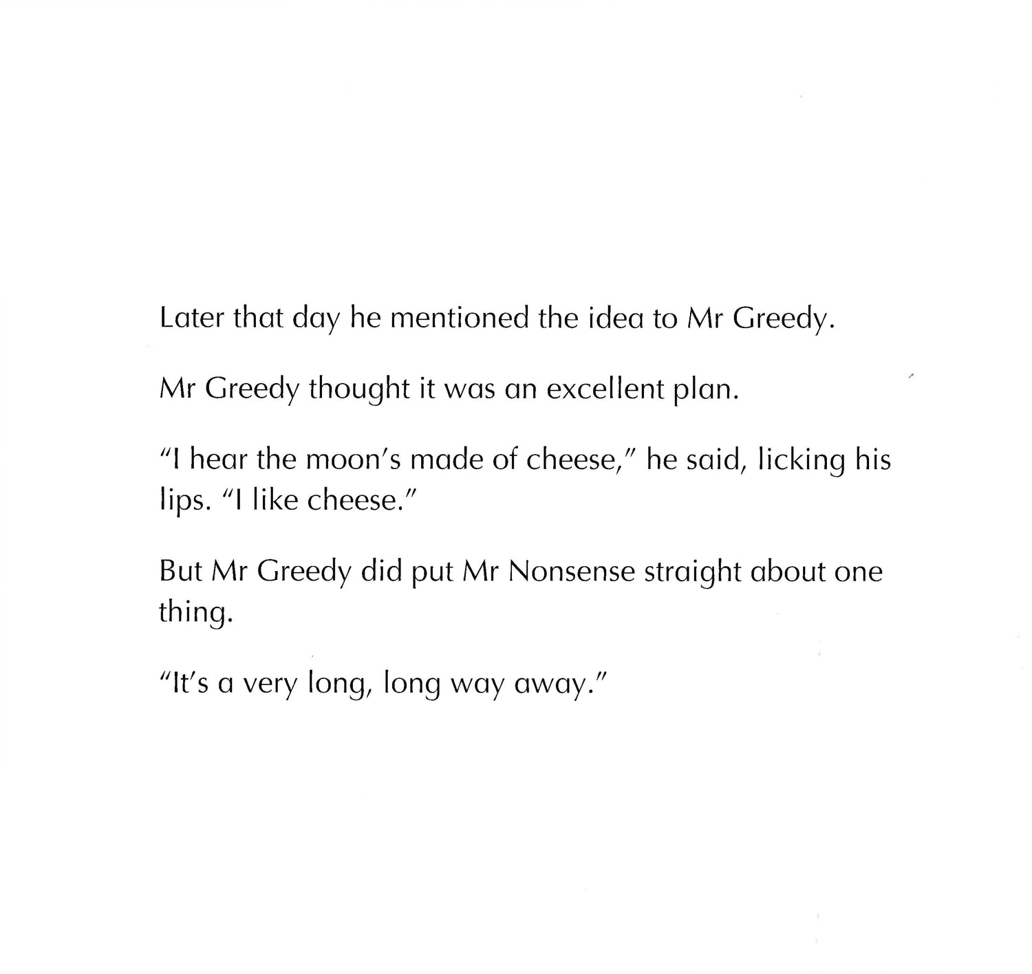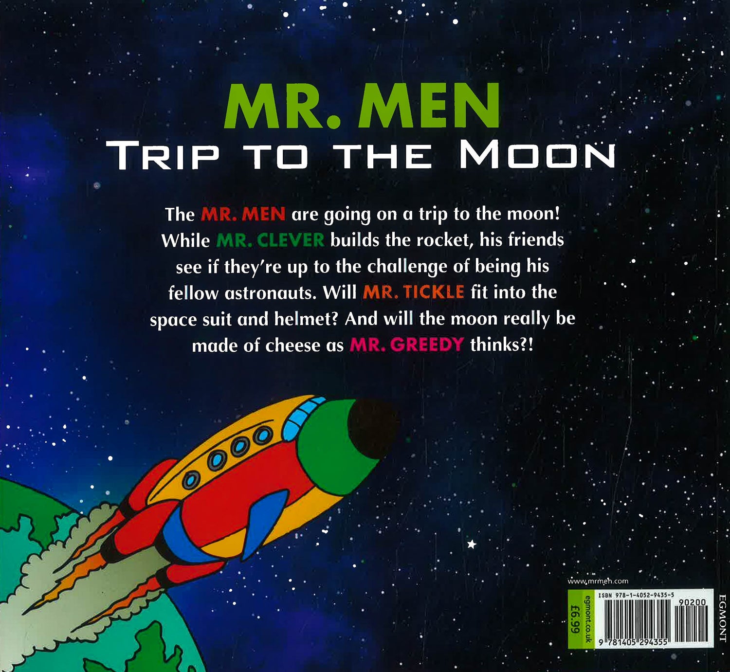 Get ready for an astronomical adventure as the Mr Men are going on a trip to the moon! Well, the Mr Men who can fit in a space suit and helmet! Will the moon really be made of cheese as Mr Greedy thinks and will there be any cows jumping overhead?!