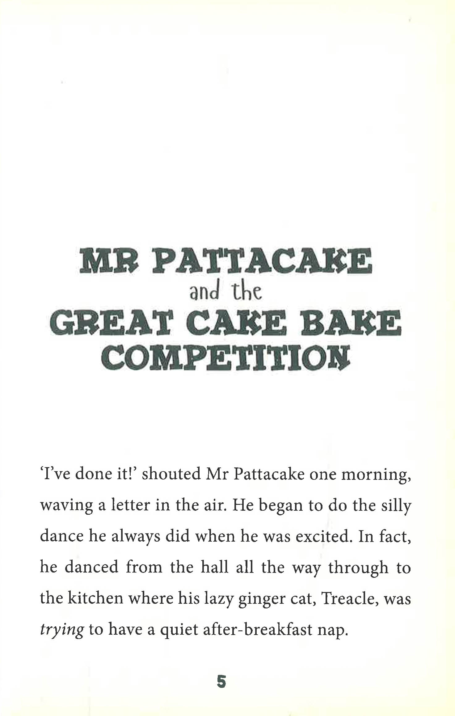 Mr Pattacake is a finalist in the Great Cake Bake Competition! He’s competing against the very best chefs in the country, so he needs to rise to the occasion. Mr Pattacake decides to bake his granny’s deliciously light sponge cake. But, oh crumbs, she’s written the recipe in riddles! Can he work out what the secret ingredient is in time? Join Mr Pattacake and his lazy cat, Treacle, as they face up to some fierce competition and ruffle a few feathers along the way.