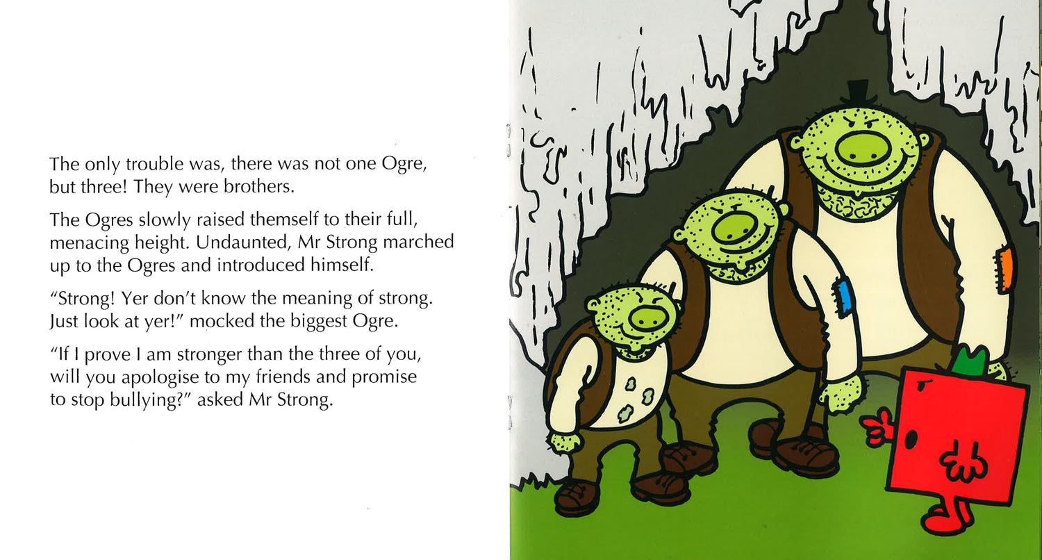 Mr. Strong is the strongest person in the world. When he hears that a nasty ogre has been picking on his friends, he decides it's time to put his strength to good use!