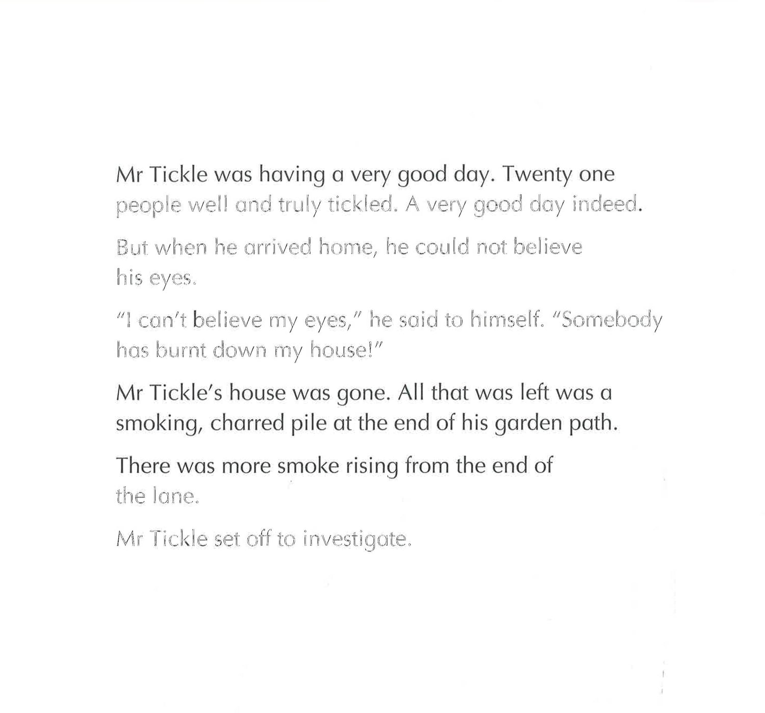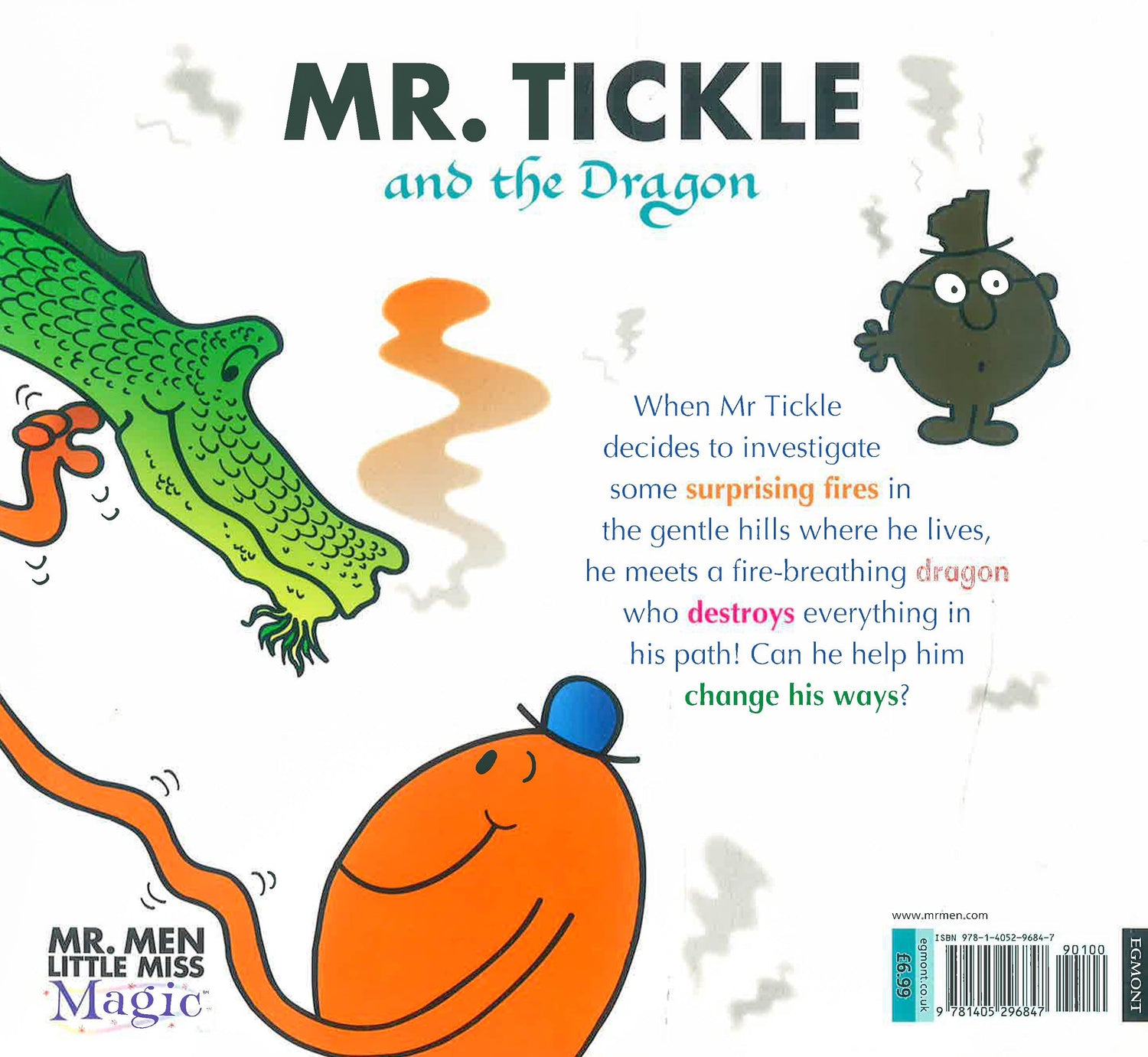 OH NO! There's a dragon in the hills. What will the Mr Men and Little Miss do? When Mr Tickle decides to investigate some surprising fires in the gentle hills where he lives, he meets a fire-breathing dragon who destroys everything in his path. Can he help him change his ways?